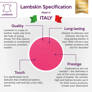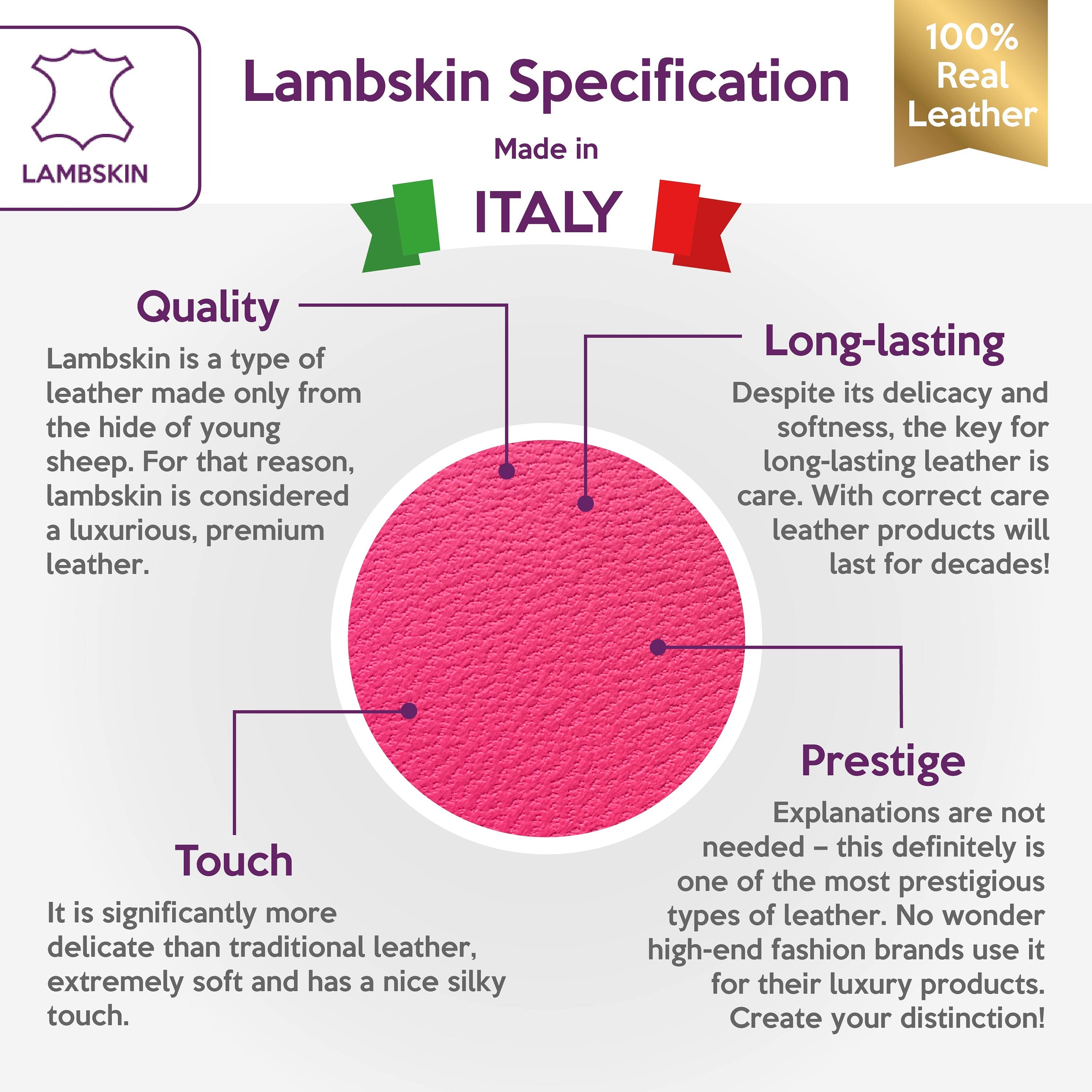 Bright Genuine leather fabric. Soft and semi pliable fuchsia pink sheep skin sheets, made in Italy.
