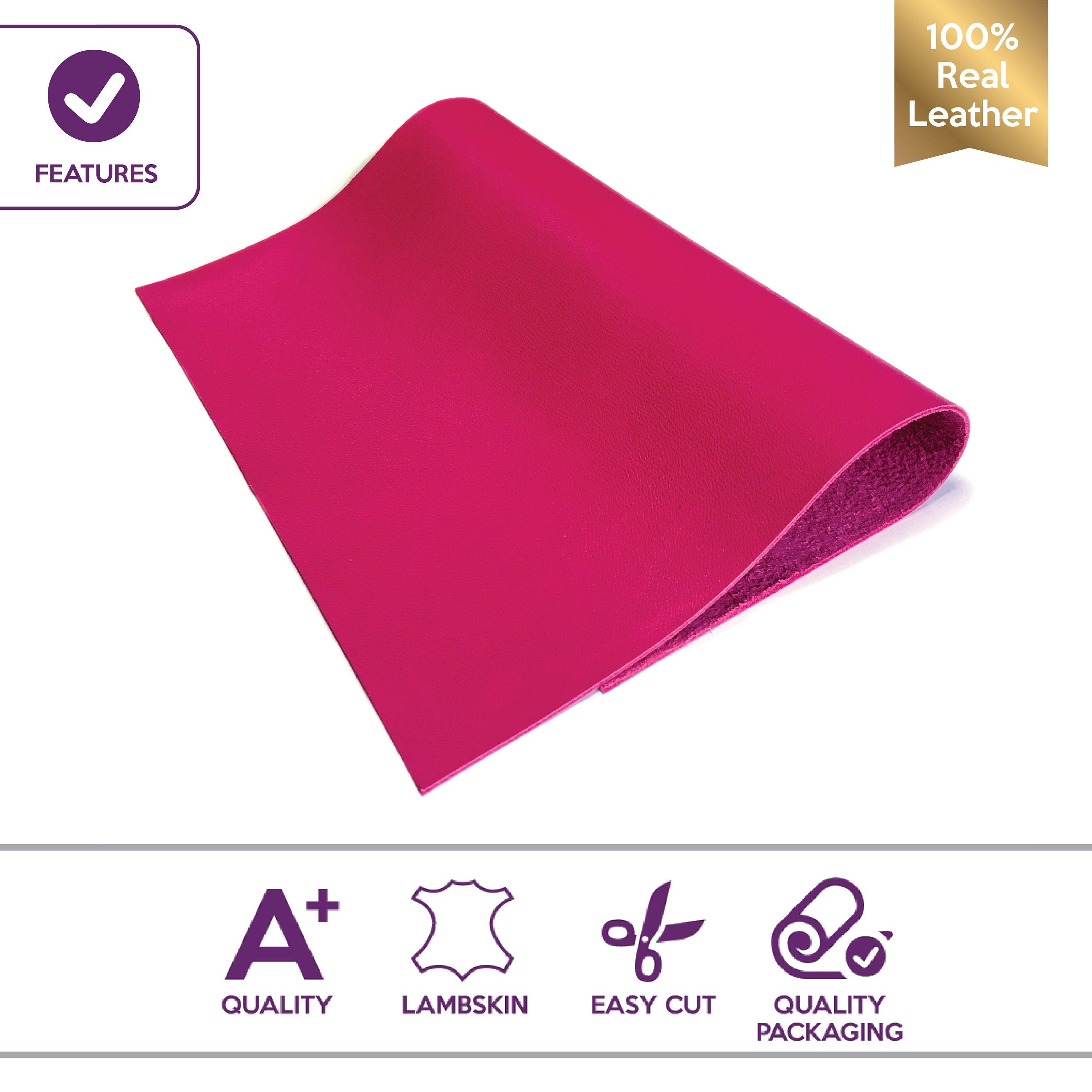 Natural leather pieces in bright rose color. Quality lambskin in bold and beautiful fuchsia tone - for colorful and unique leather projects!