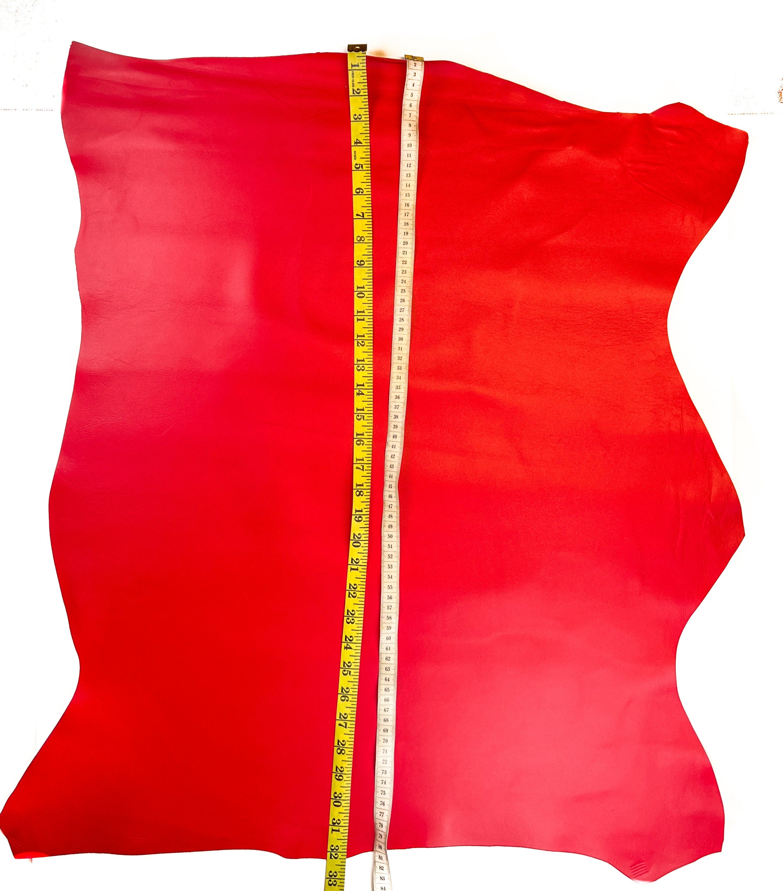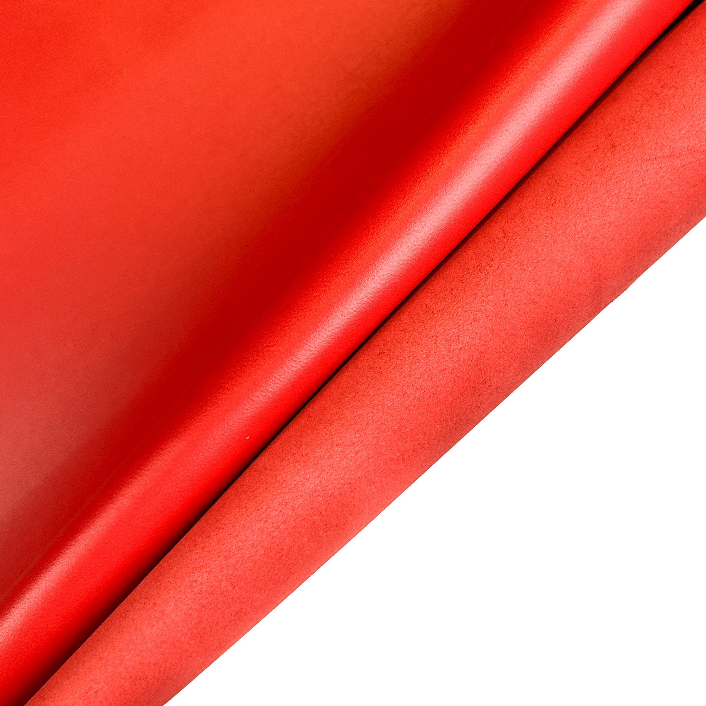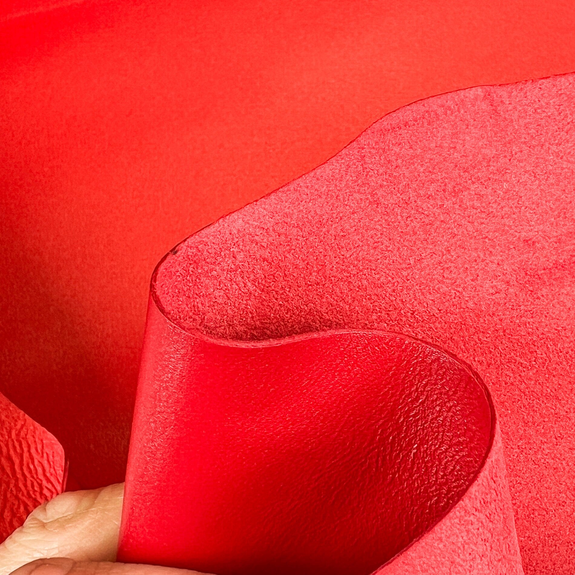 - Genuine lambskin leather in deep red color that will impress everyone. Juicy, perfect for spring! The backside is red. Leather is soft, pleasant to touch, and will perfectly suit both accessories and clothing. Thickness 0.8mm // 2oz