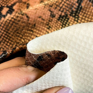 High-quality lambskin leather hides with snake print. Beautiful brown pieces with elegant polished snake texture for your best projects! Our mission is to provide only the best quality Italian leather samples to other leather workers, crafters of all kinds, small businesses or Etsy shop for your own projects.