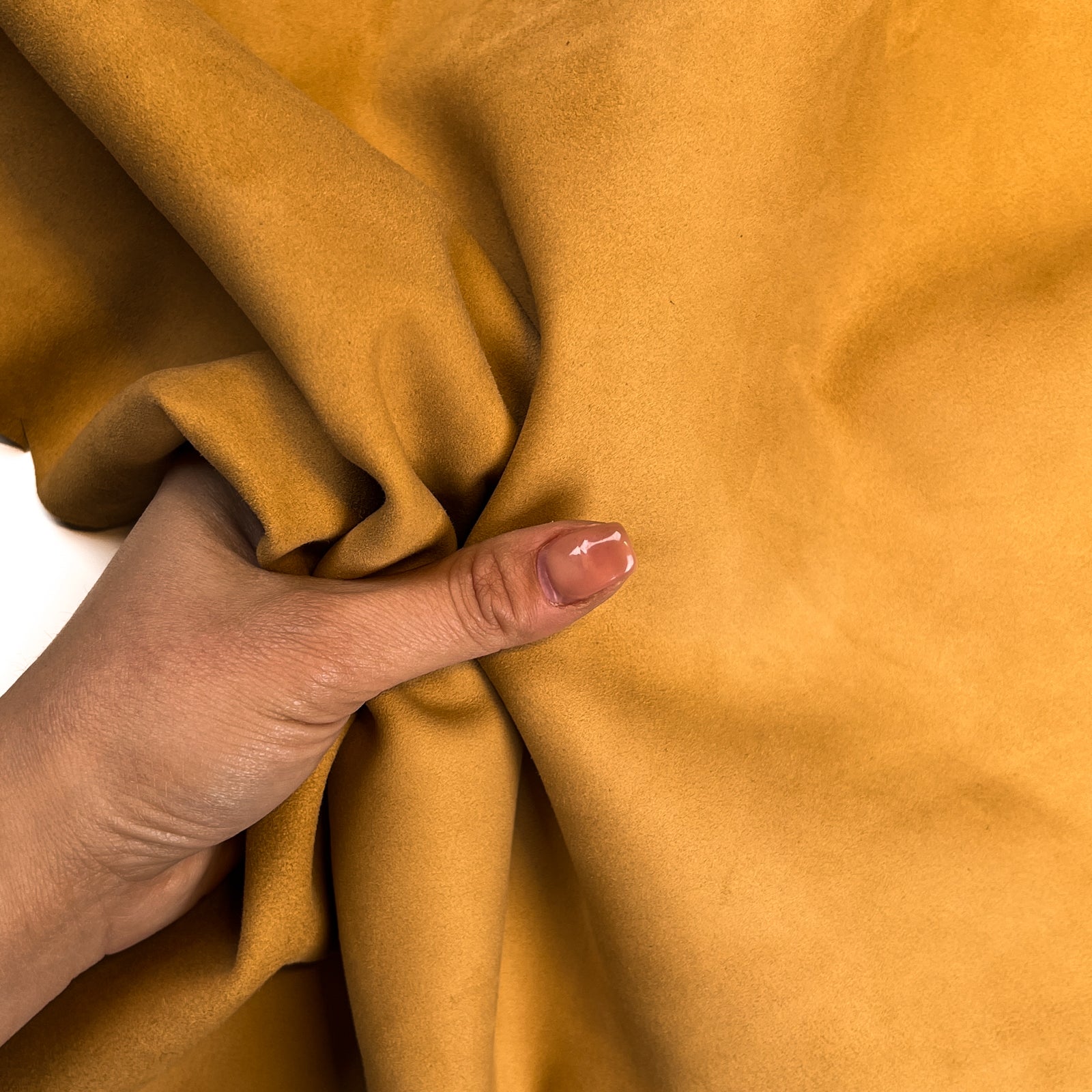 Yellowish-brown color suede leather pieces. Very soft material. Light brown color with a yellow undertone. Our mission is to provide only the highest quality Italian leather to other leather workers, crafters of all kinds, small businesses, or shops for your own projects.