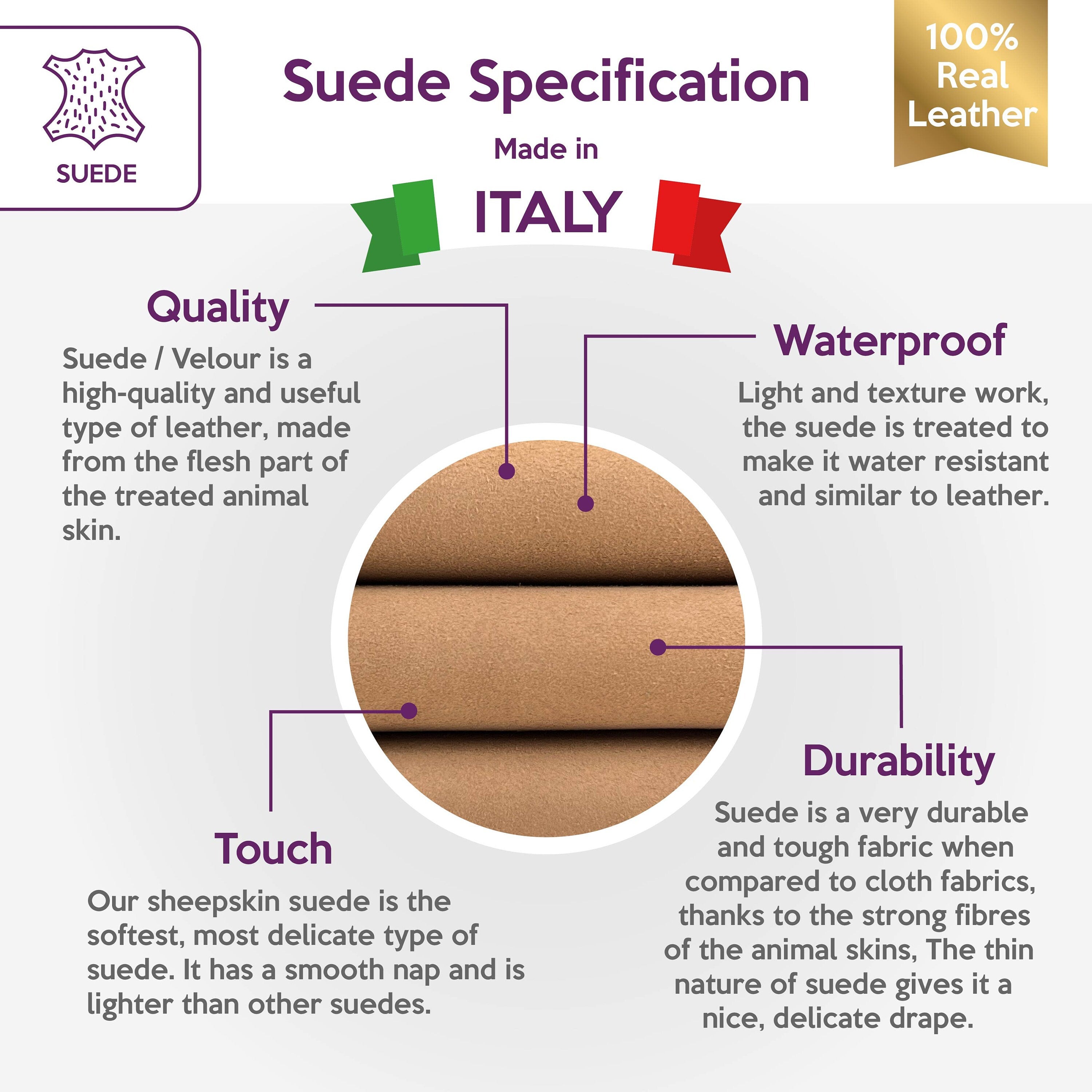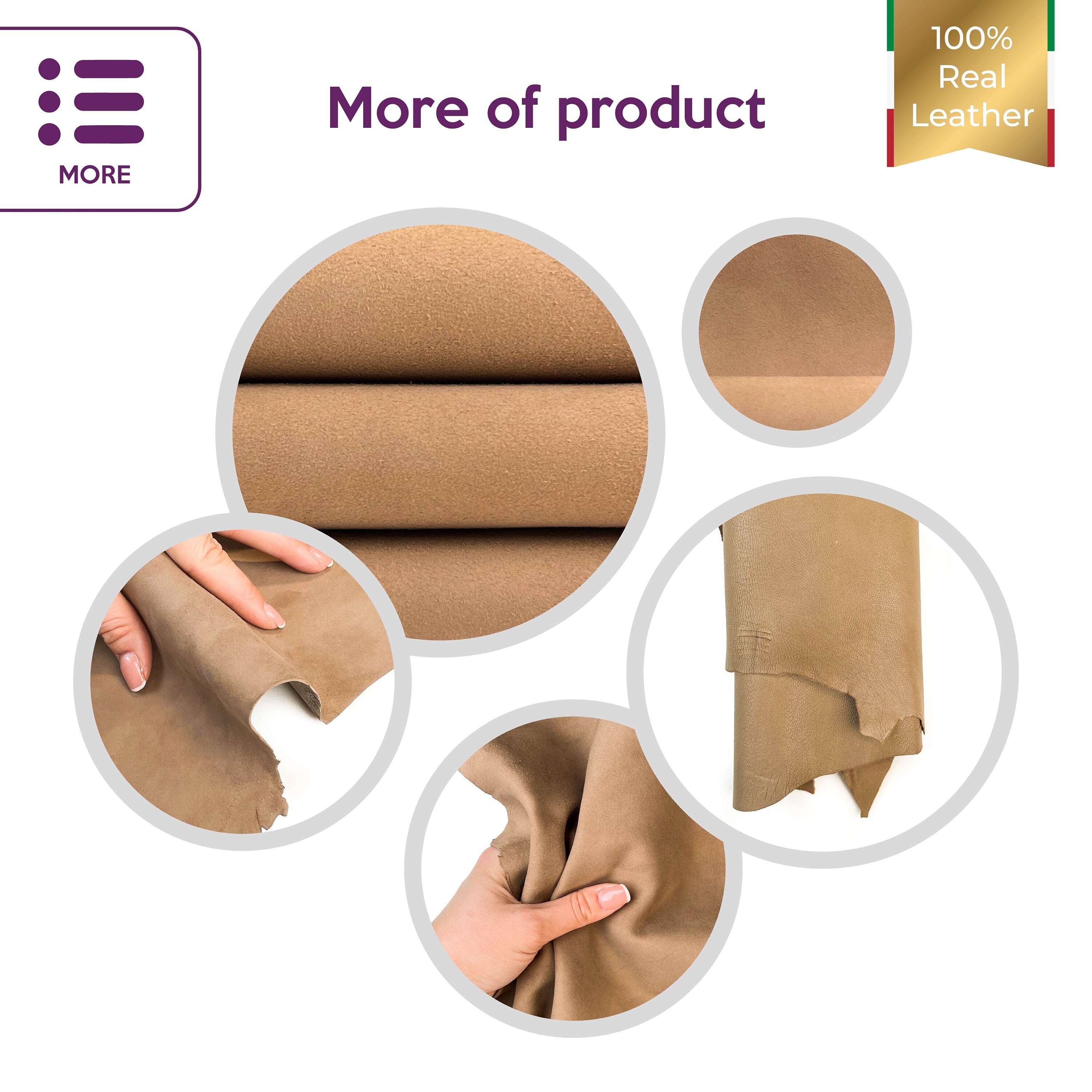 - LIGHT brown suede material for sewing and handcrafting, real beige sheep skin sheets are soft and nice to touch. Not too stiff or too thick. Brownish taupe color. 100% Real beige leather pieces, made in Italy.
