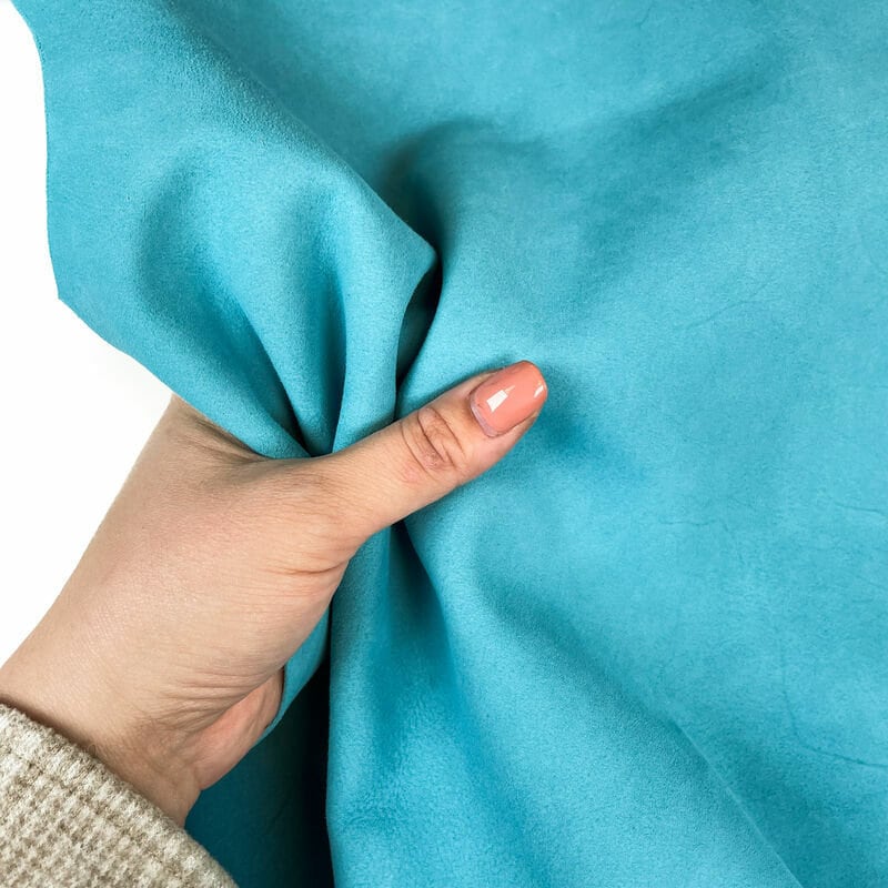 High-quality lambskin suede leather fabric hides in blue color. Soft blue leather for your best projects! Our mission is to provide only the best quality Italian leather samples to other leather workers, crafters of all kinds, small businesses or Etsy shop for your own projects.