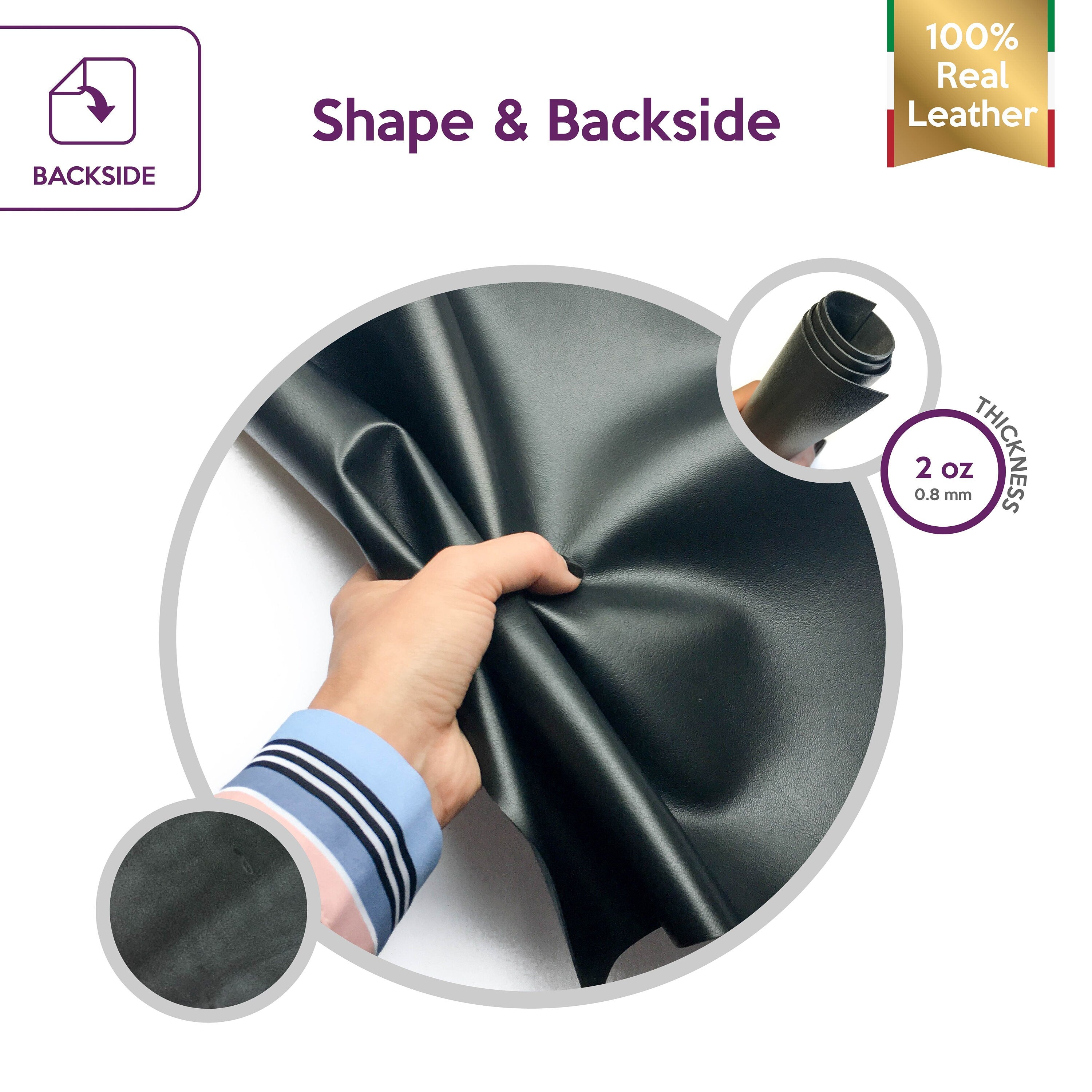 -Keep in mind that dimensions (square footage, square meters) on LEATHER refers to total workable surface area as hide shape is not consistent, so if this is the first time you buy genuine leather don`t be confused with measurements, for example 9 sqf DON`T mean 3 sqf of length x 3 sqf of wide.