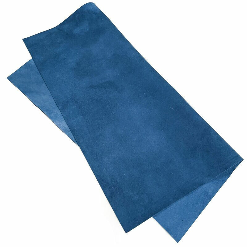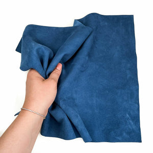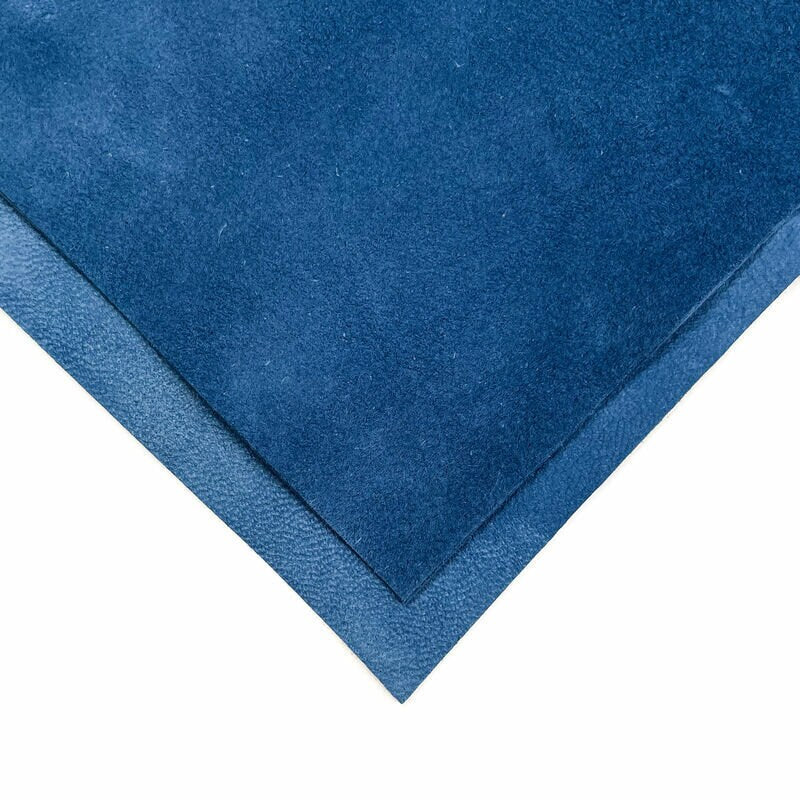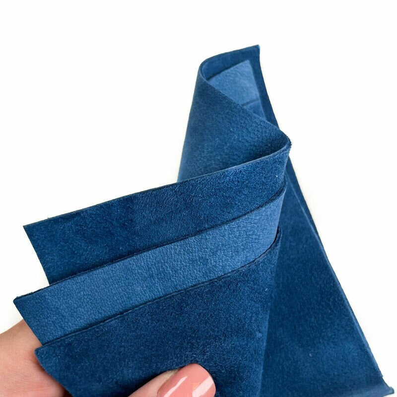 - Classic blue suede leather (size) sheet for sewing. Soft, pleasant and really nice velour material scraps. Real suede leather pieces, soft and rich color.