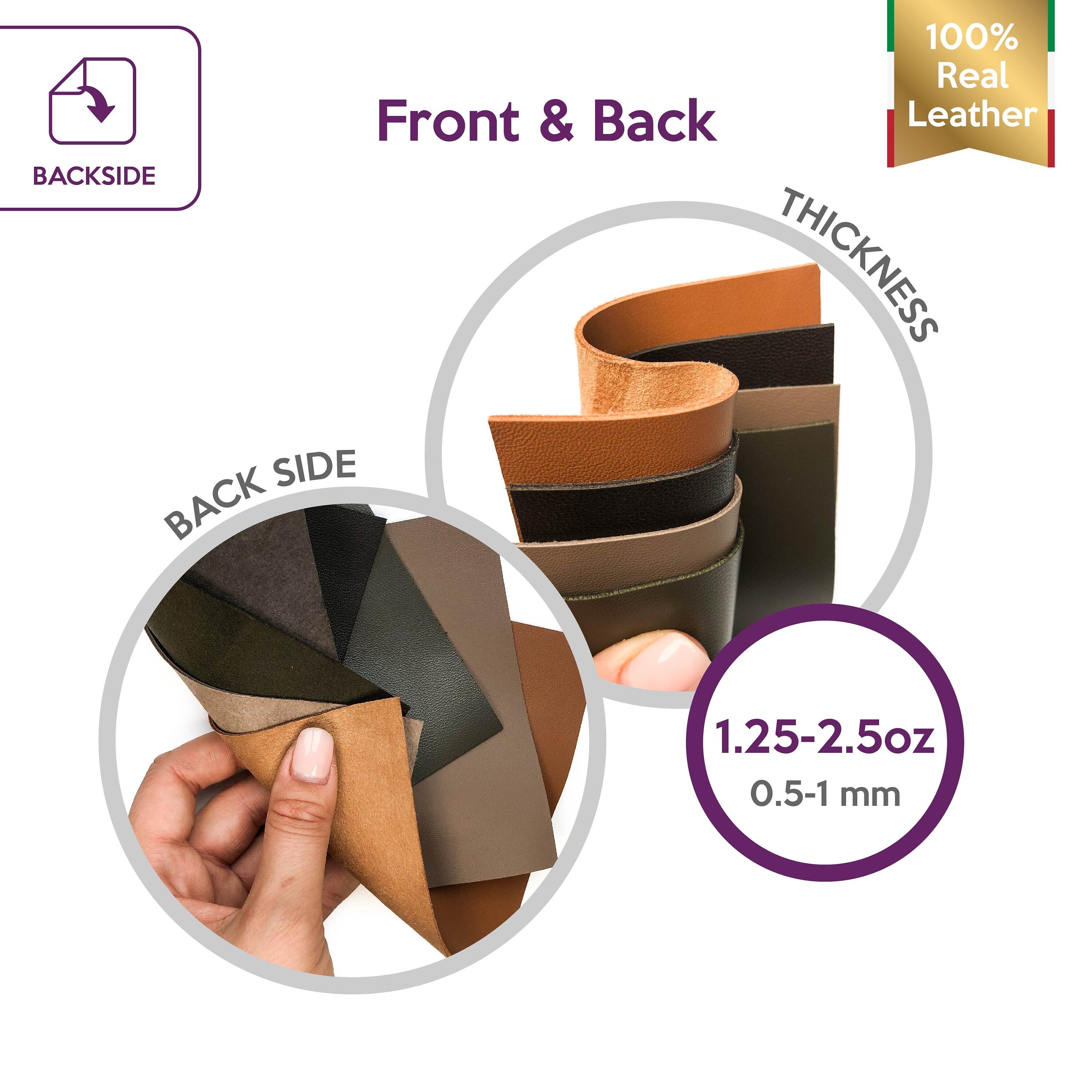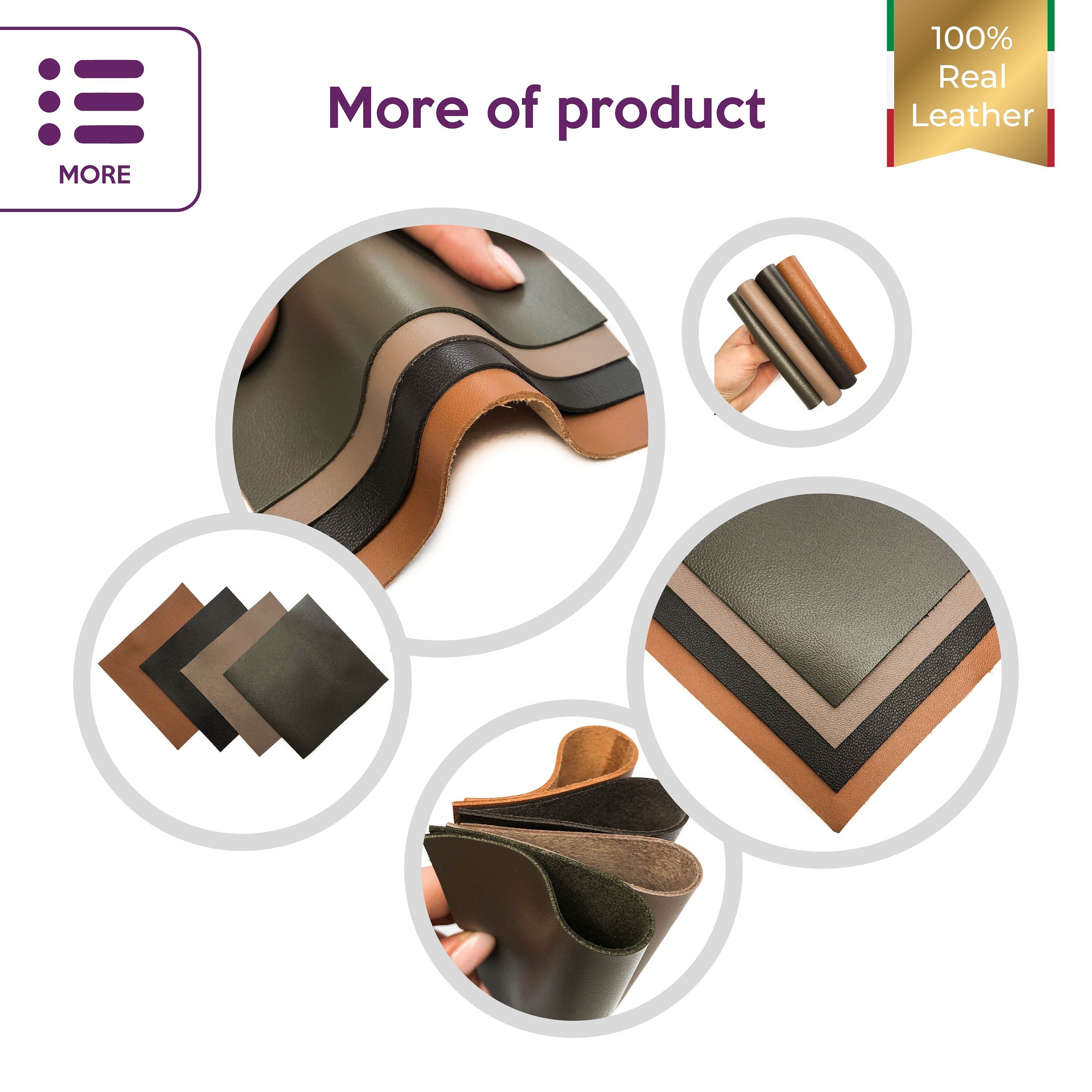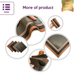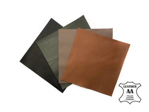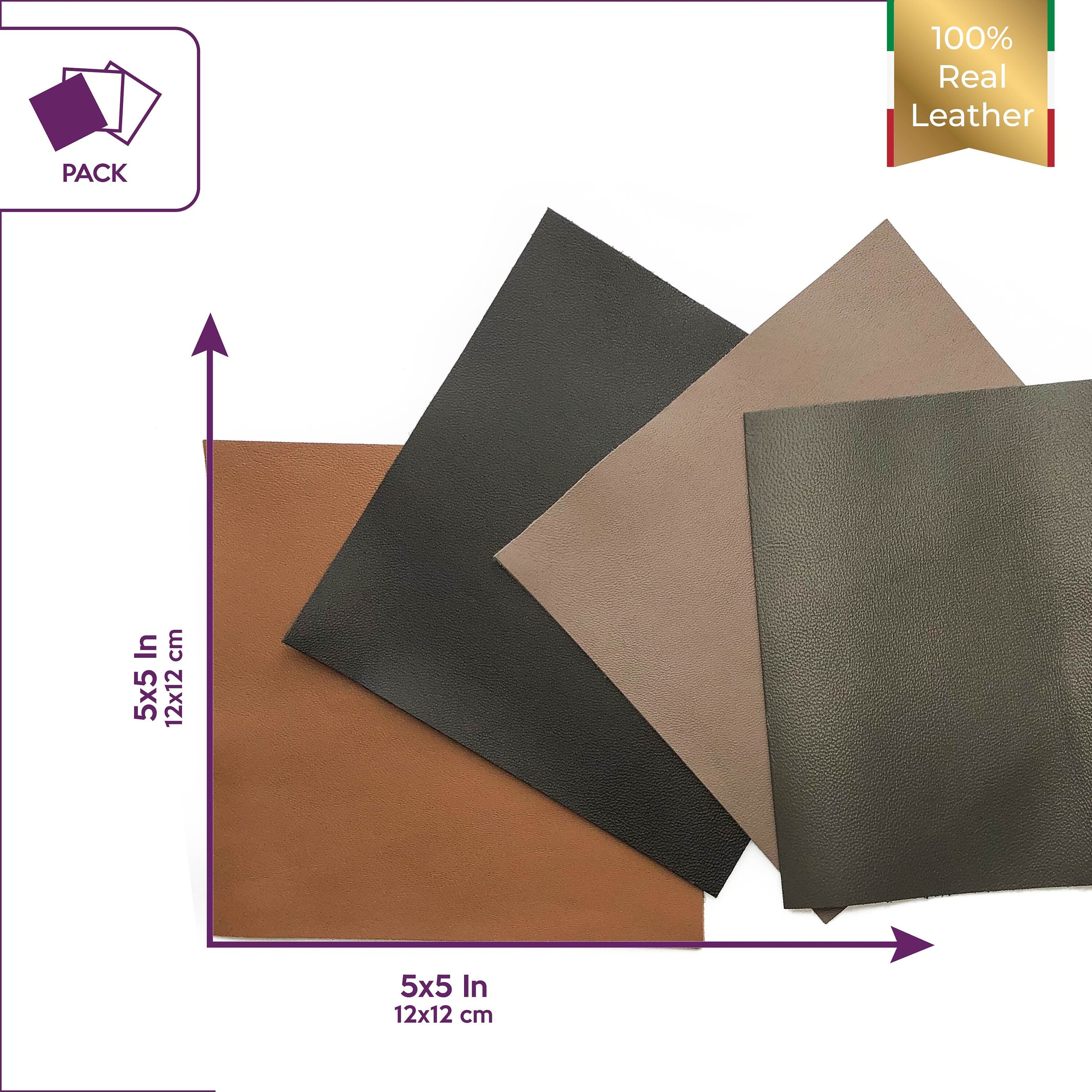FOUR Pre-cut leather Sheets : 1 dark brown mat leather sheet, 1 grayish brown leather sheet, 1 natural brown leather sheet and 1 light camel brown leather sheet.