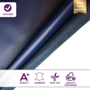 - Navy lambskin leather pieces for sewing and handcrafting. Amazing leather for bag and purse crafters, will be long-lasting.