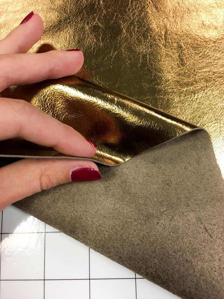 -Quite firm, but pleasant for touch, lightweight, thin dark gold calf hides are great for leather crafts, is not too elastic, good for leather crafts that require firm, bit rigid leather. Festive Dark golden color, bronze print on shaved calf leather. Can be used as fabric for gold bag making, glossy leaf leather earrings, natural leather material for necklaces and other charming, shiny, luxurious accessories. Perfect material for brave, metallic leather jackets and other clothing for stunning look!
