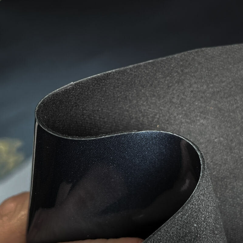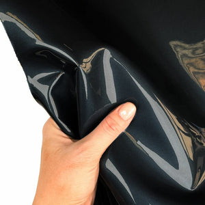 - Dark blue leather. Shiny lacquer leather pieces. Glossy lambskin fabric material. The backside is black. Perfect leather for sewing skirts, pants, jackets.