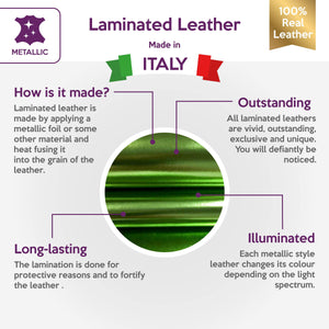 Light Green Metallic Leather Hides are 100% real Sheep Leather, made in best Italian tanneries.