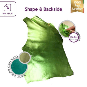 Shiny green Leather Skins are supple and smooth, backside is light brown. Thickness at around 2 oz or 0.8 mm. Great shiny green leather for jewelry, accessories, leather crafting, bright green leather bags e.t.c. Fresh color and great quality!