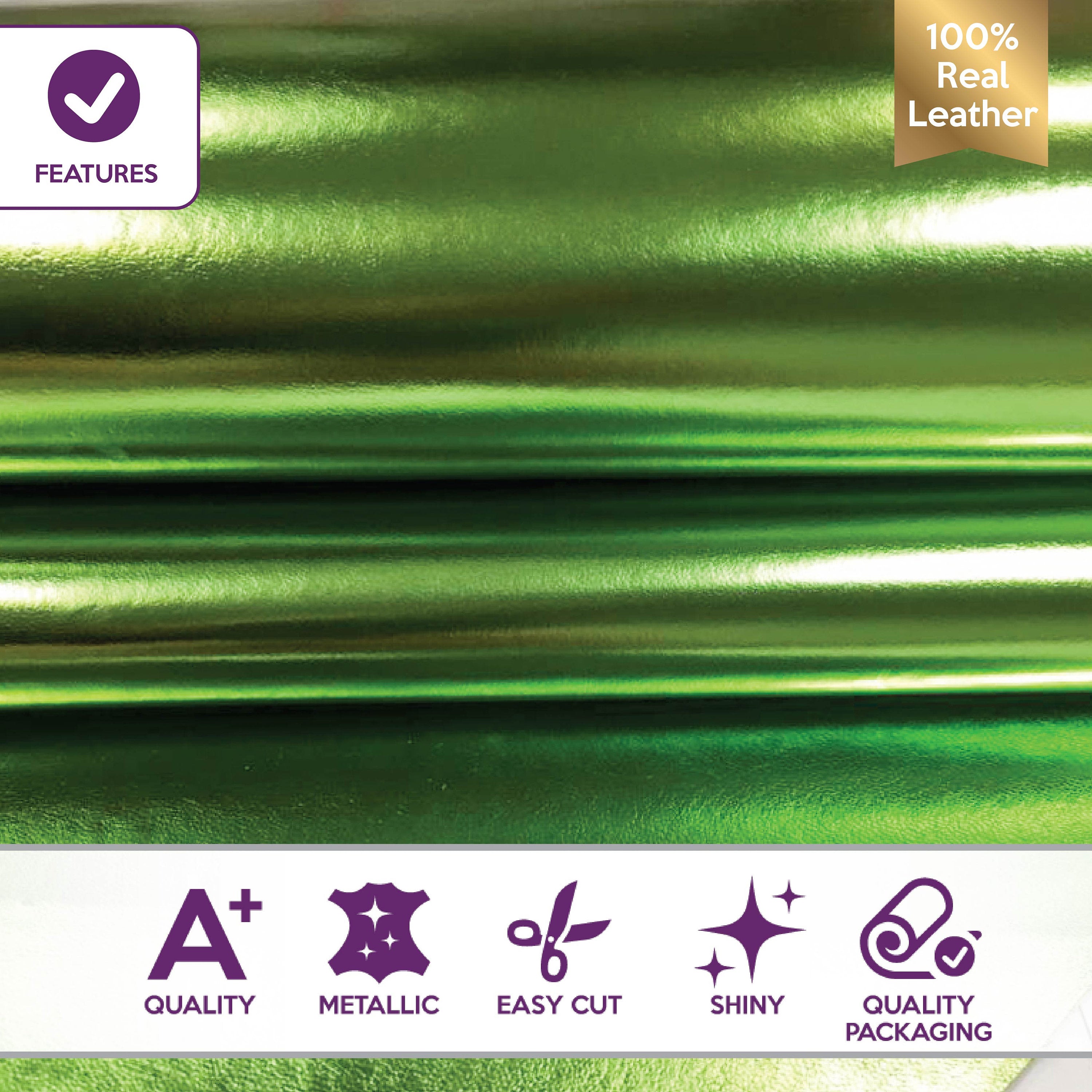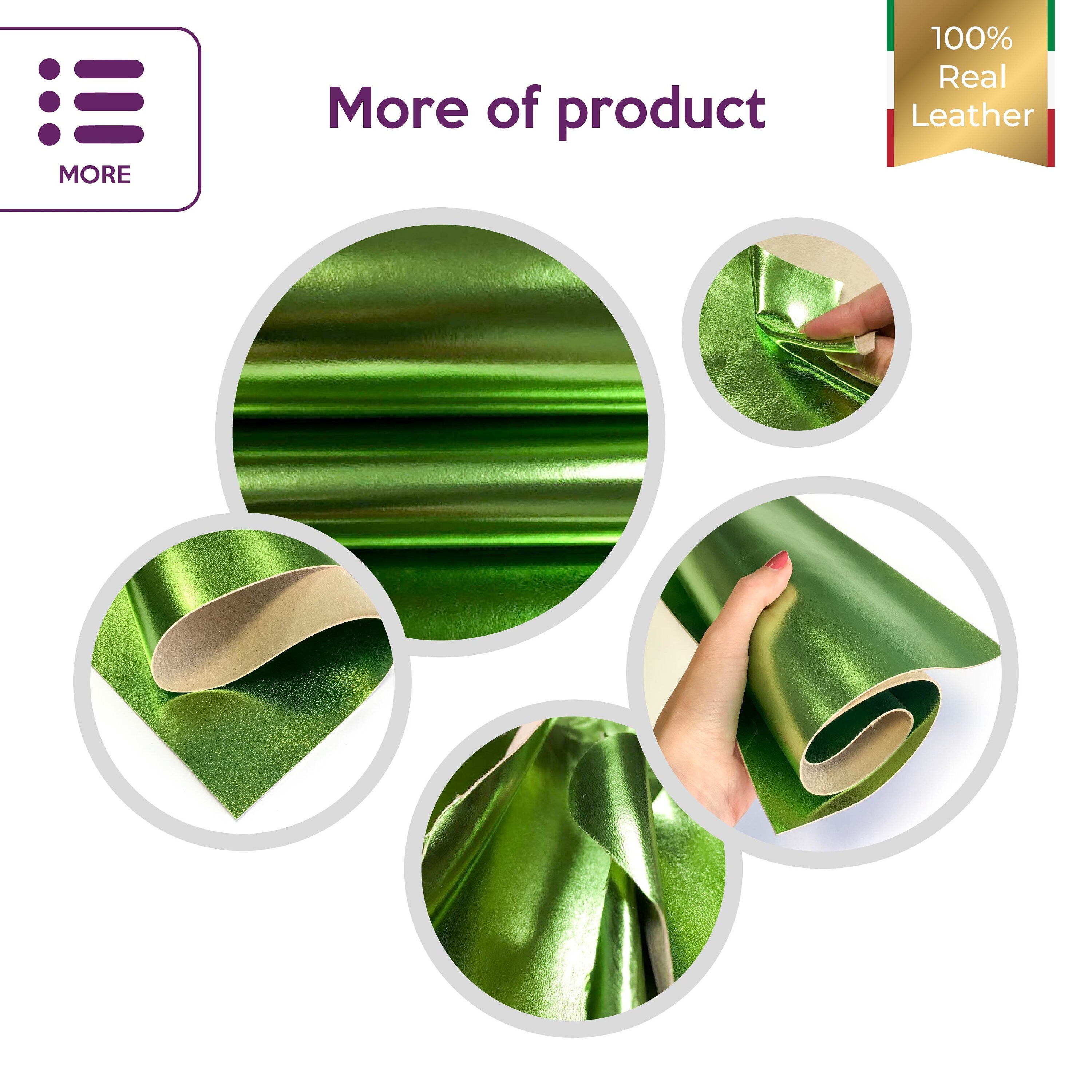 GREEN METALLIC LEATHER Genuine sheep skin sheets for sewing "Verde" Light Green Metallic Leather Hides are 100% real Sheep Leather, made in best Italian tanneries. Shiny green Leather Skins are supple...