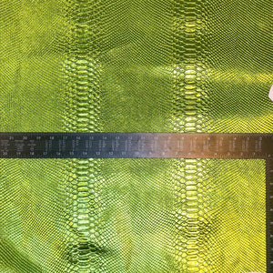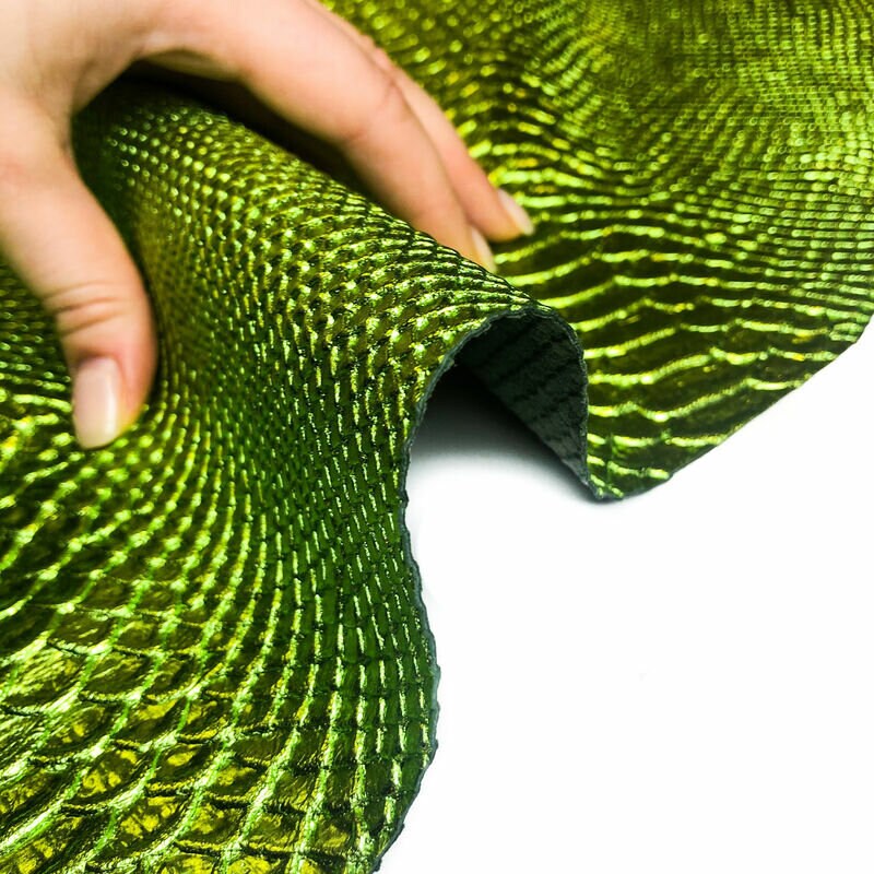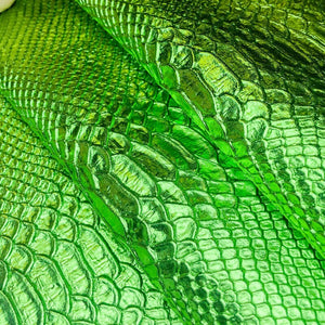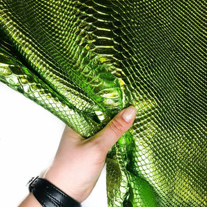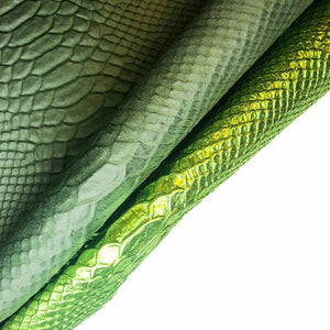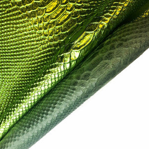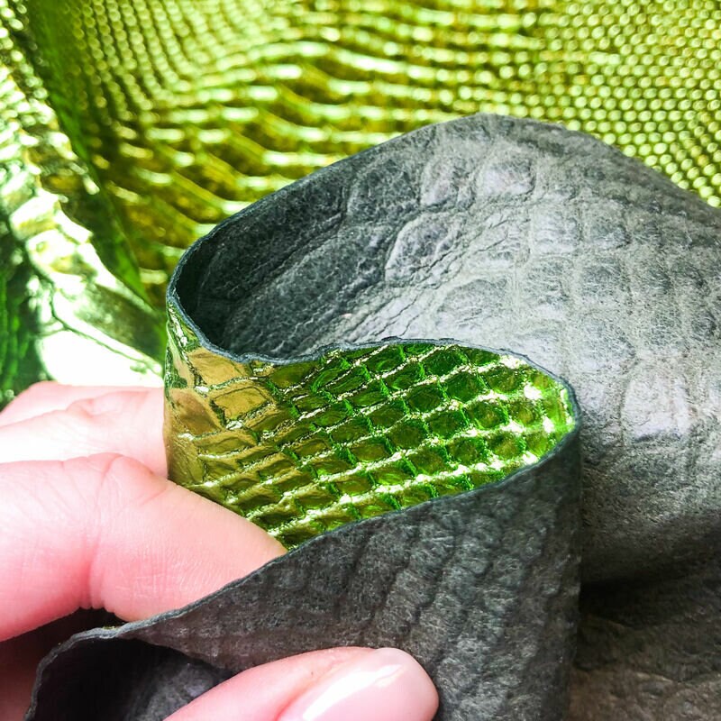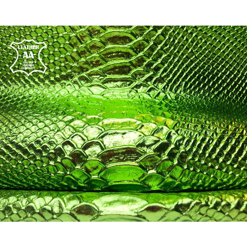High-quality lambskin leather with snake print. Metallic green finish leather for your best projects! Our mission is to provide only the best quality Italian leather to other leather workers, crafters of all kinds, small businesses, or Etsy shop for your own projects.