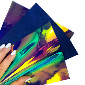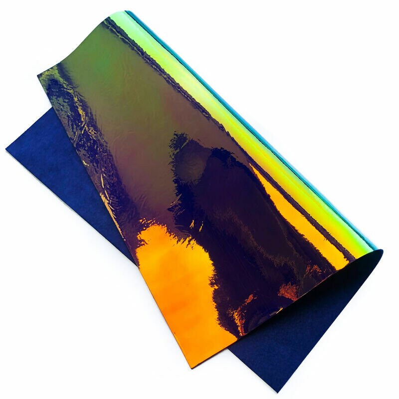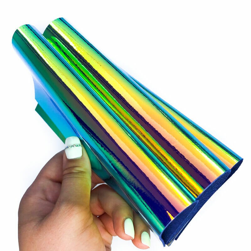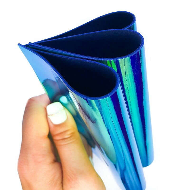 - The hologram is definitely a trend of 2020! Various color hologram leather sheets. Glossy neon - gasoline holographic shades all over the leather pieces. Genuine lambskin scraps. The backside is dark blue.