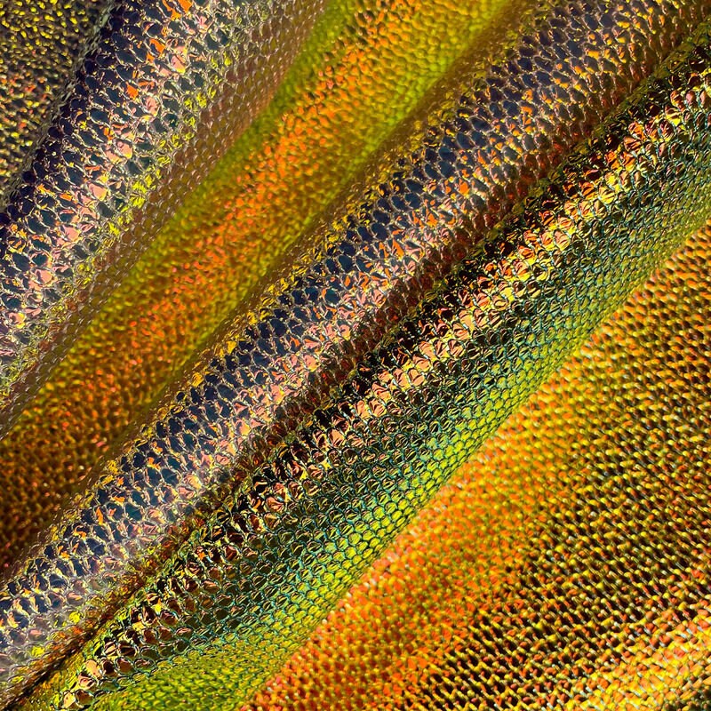 - Hologram is definitely trend of 2021 ! Bright hologram leather pieces. Glossy colorful holographic shades all over leather. Genuine lambskin hides with lines. Perfect leather for sewing.