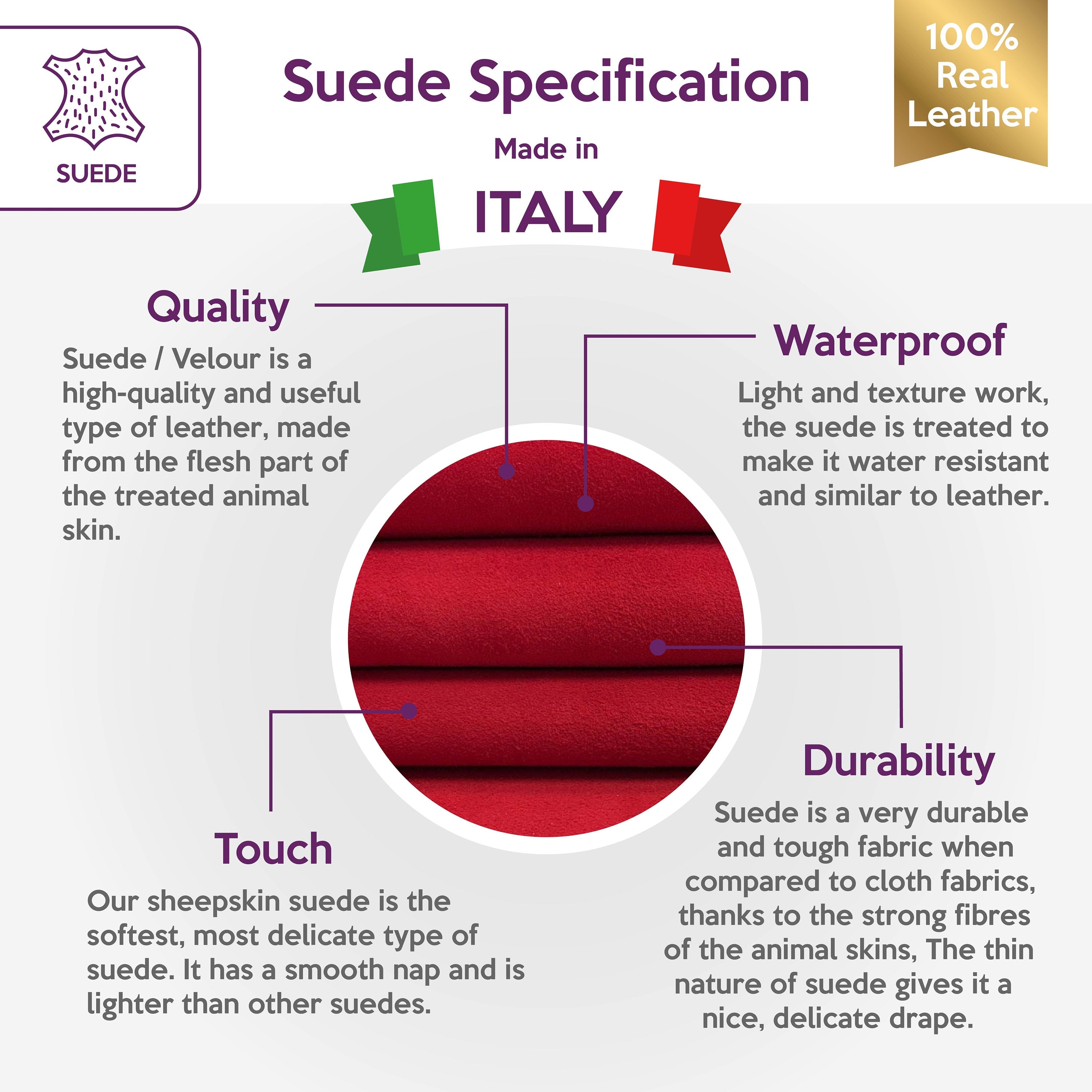 High-quality suede leather. Soft deep red leather material for your best projects! Our mission is to provide only the best quality Italian leather to other leather workers, crafters of all kinds, small businesses, or Etsy shop for your own projects.