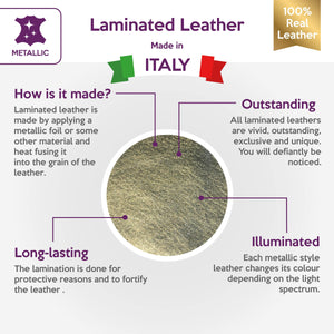 Pre cut sheets of soft, pliable genuine metallic leather.