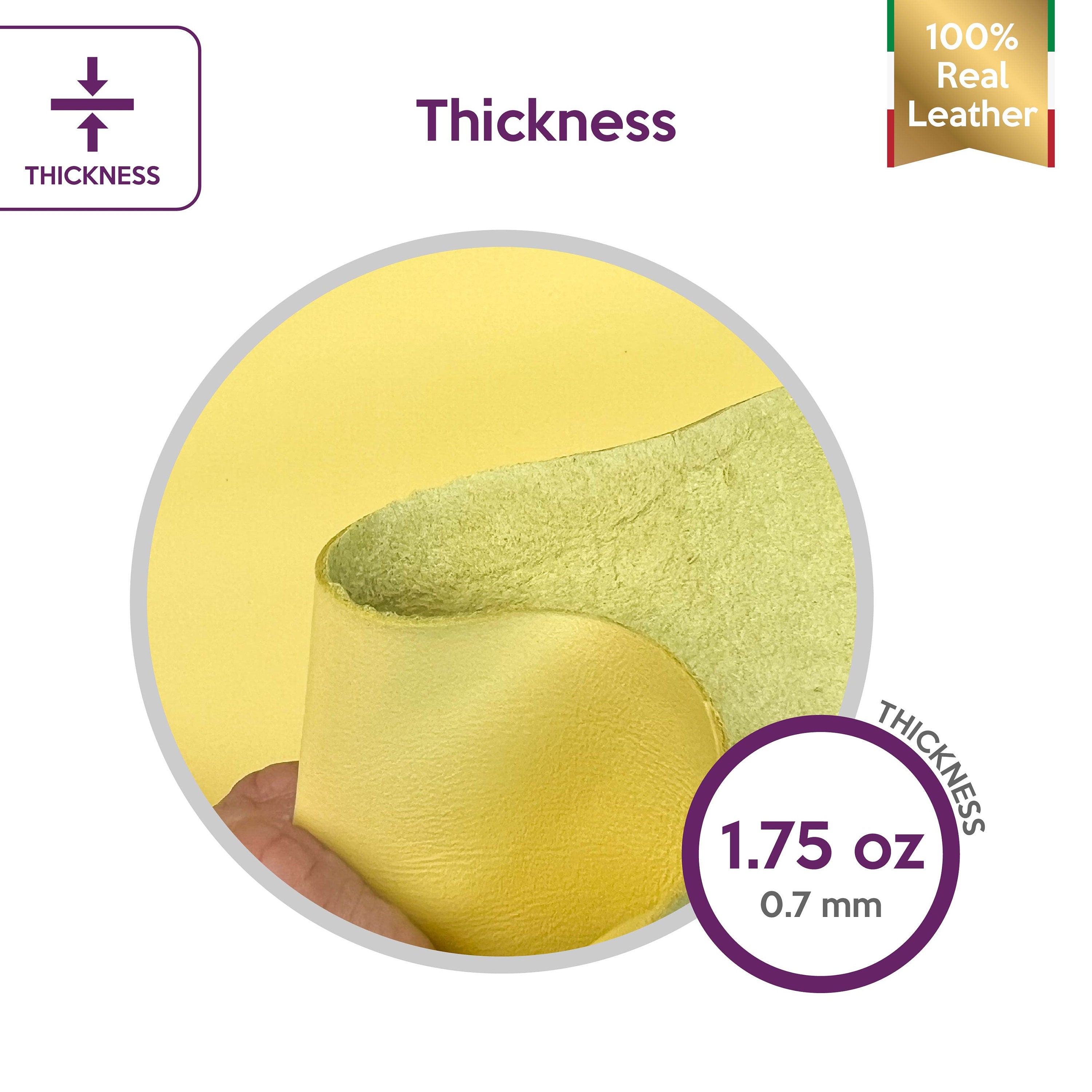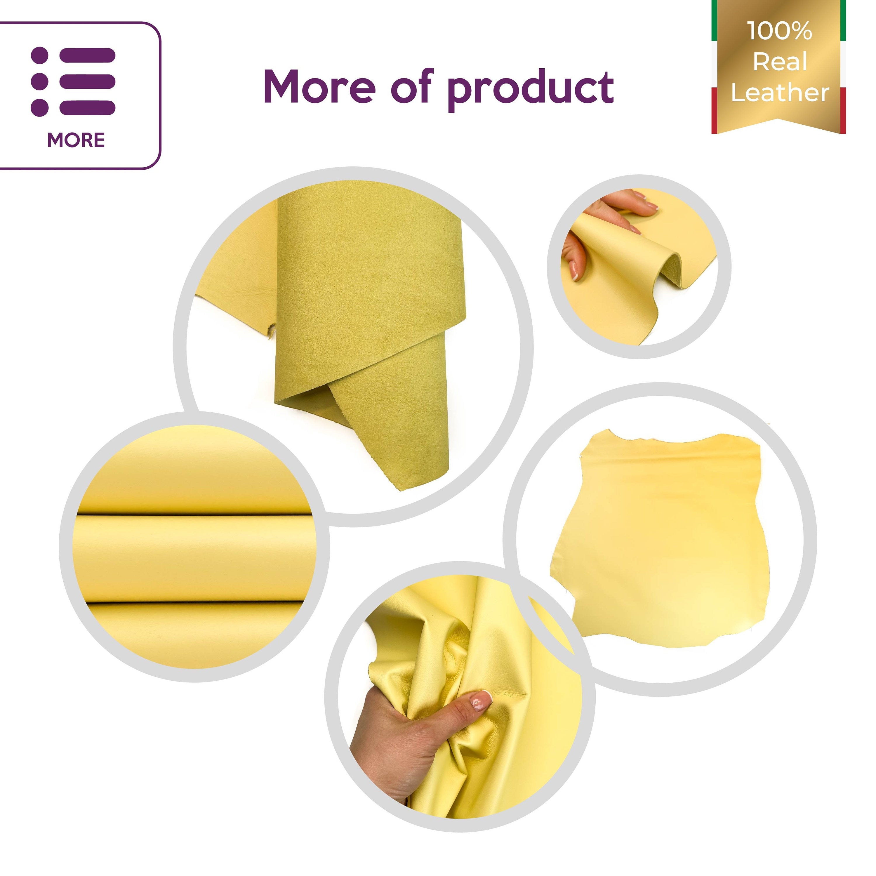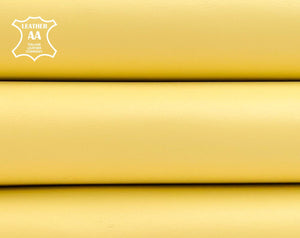 - Beautiful light pastel yellow lambskin leather hides. Leather is quite thin but will hold it's form. Perfect for leather bags. Matte yellow lambskin leather. Backside is little bit darker than front.