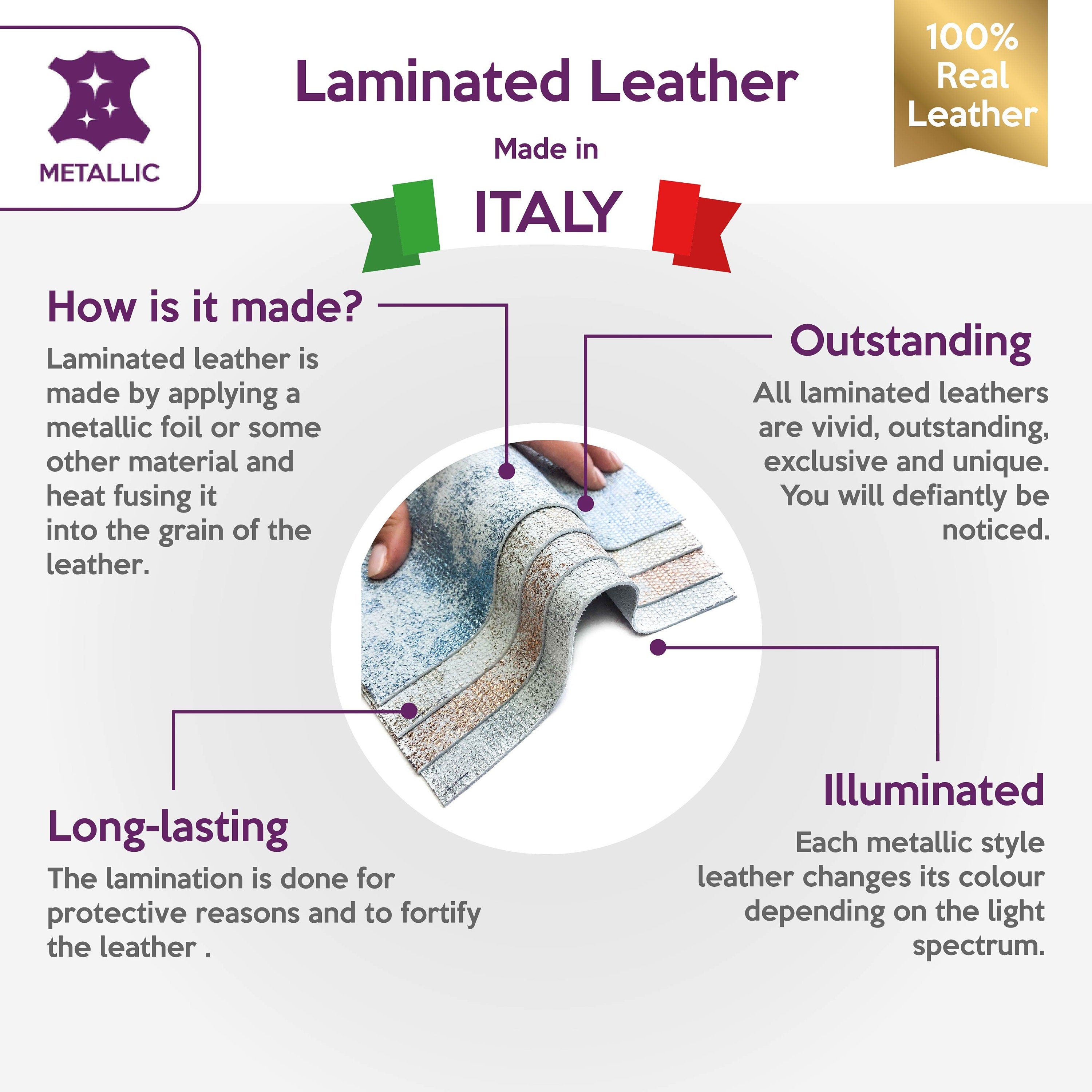 Four different colors. Our mission is to provide only the best quality Italian leather samples to other leather workers, crafters of all kinds, small businesses or Etsy shop for your own projects.