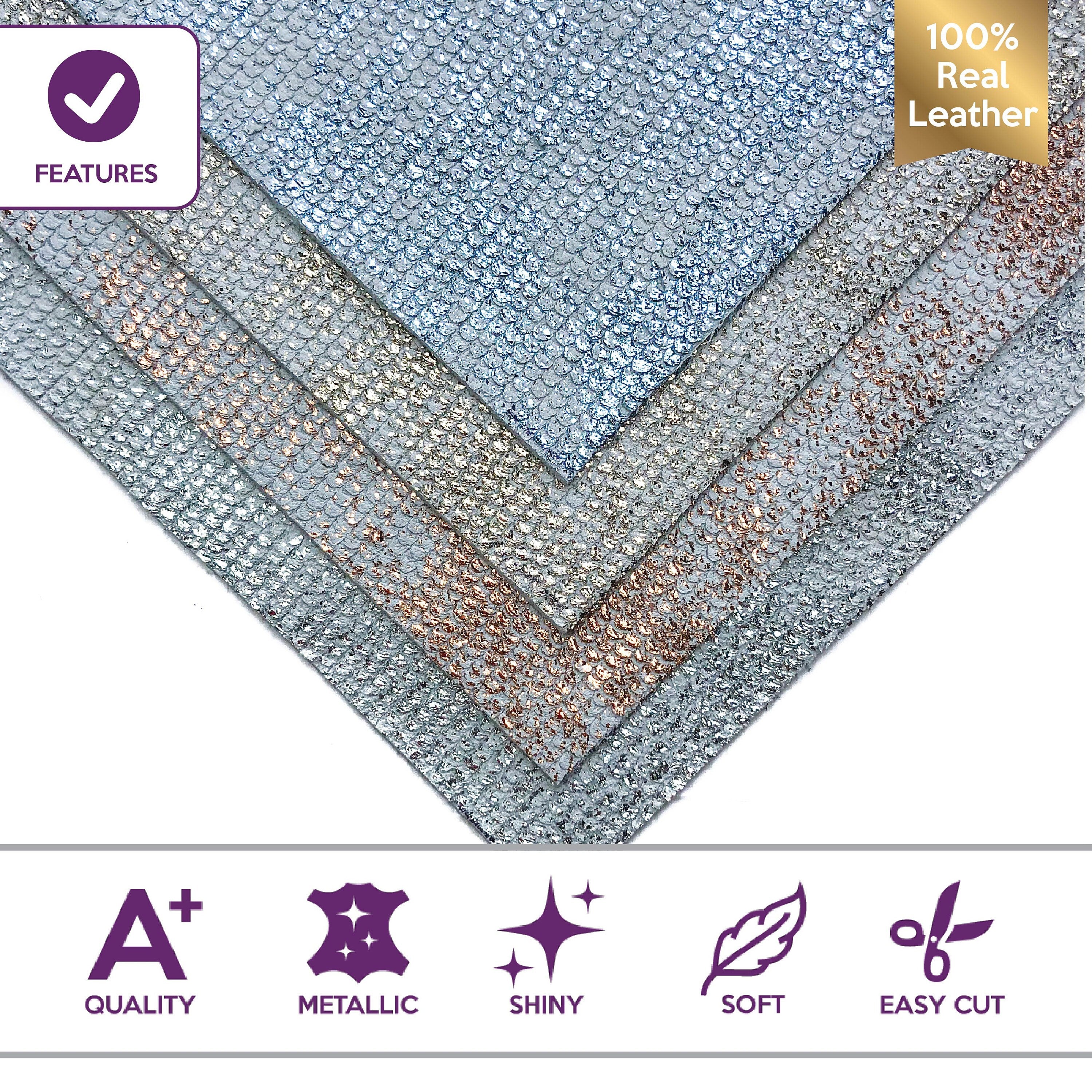 High-quality Italian lambskin leather fabric sheets - 8x10 inches (20x25 centimeter) with mermaid scale print. Luxury feel with small cuts for not only amazing look, but touch too.
