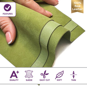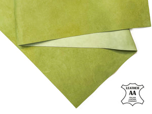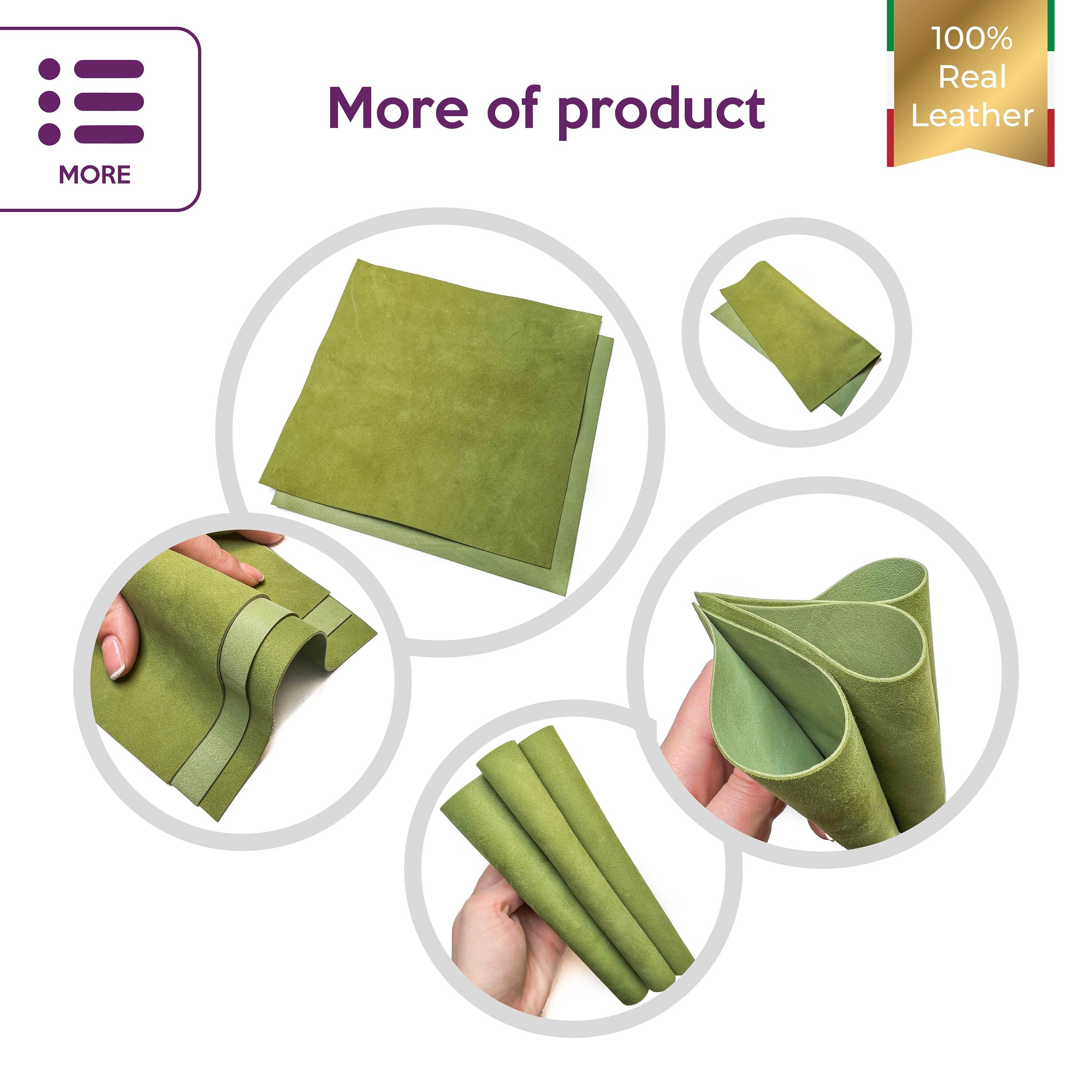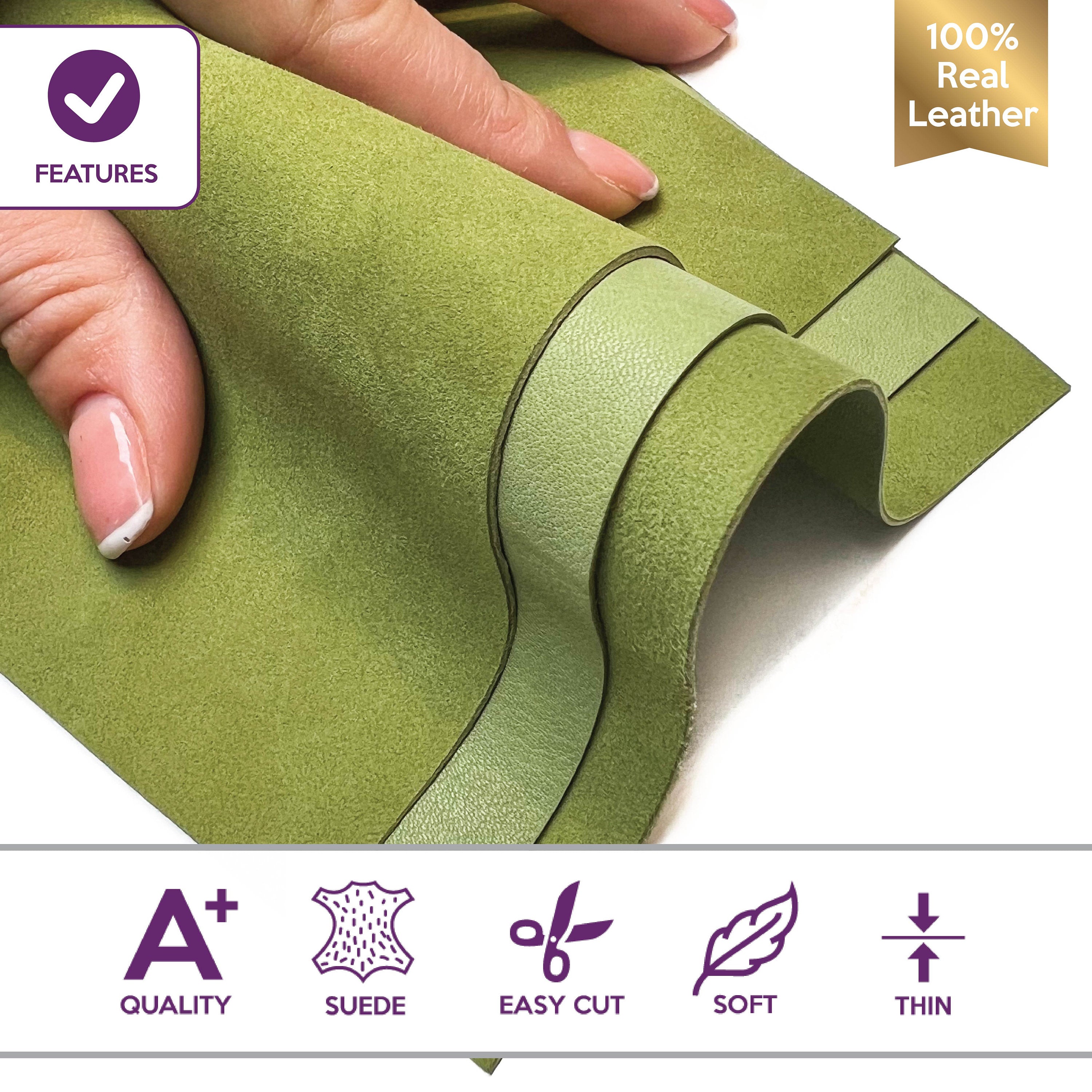 - Moss green soft suede leather pieces. Natural lambskin velour sheets from the best Italian tannery. Perfect leather scraps for sewing. Backside is a bit lighter than front.
