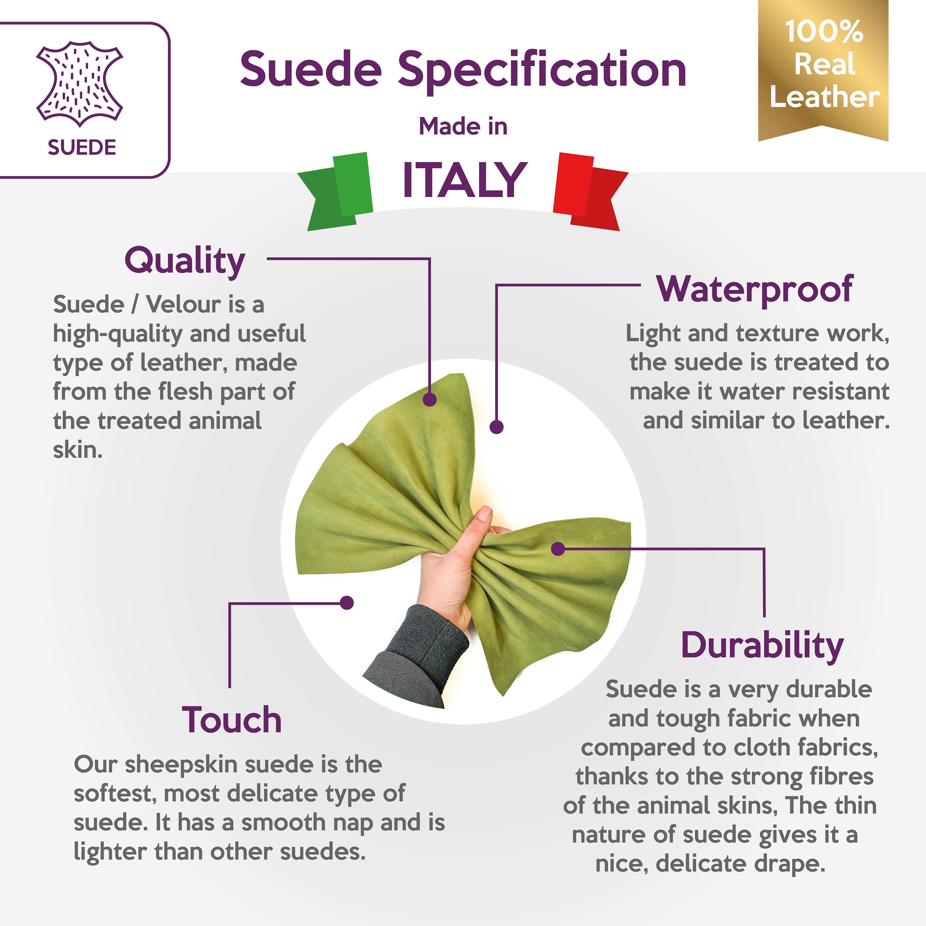 Our High-quality lambskin suede leather hides are made in the finest tannery in Italy! Amazing pieces for your best projects! Our mission is to provide only the best quality Italian leather samples to other leather workers, crafters, small businesses or for your own fun projects.