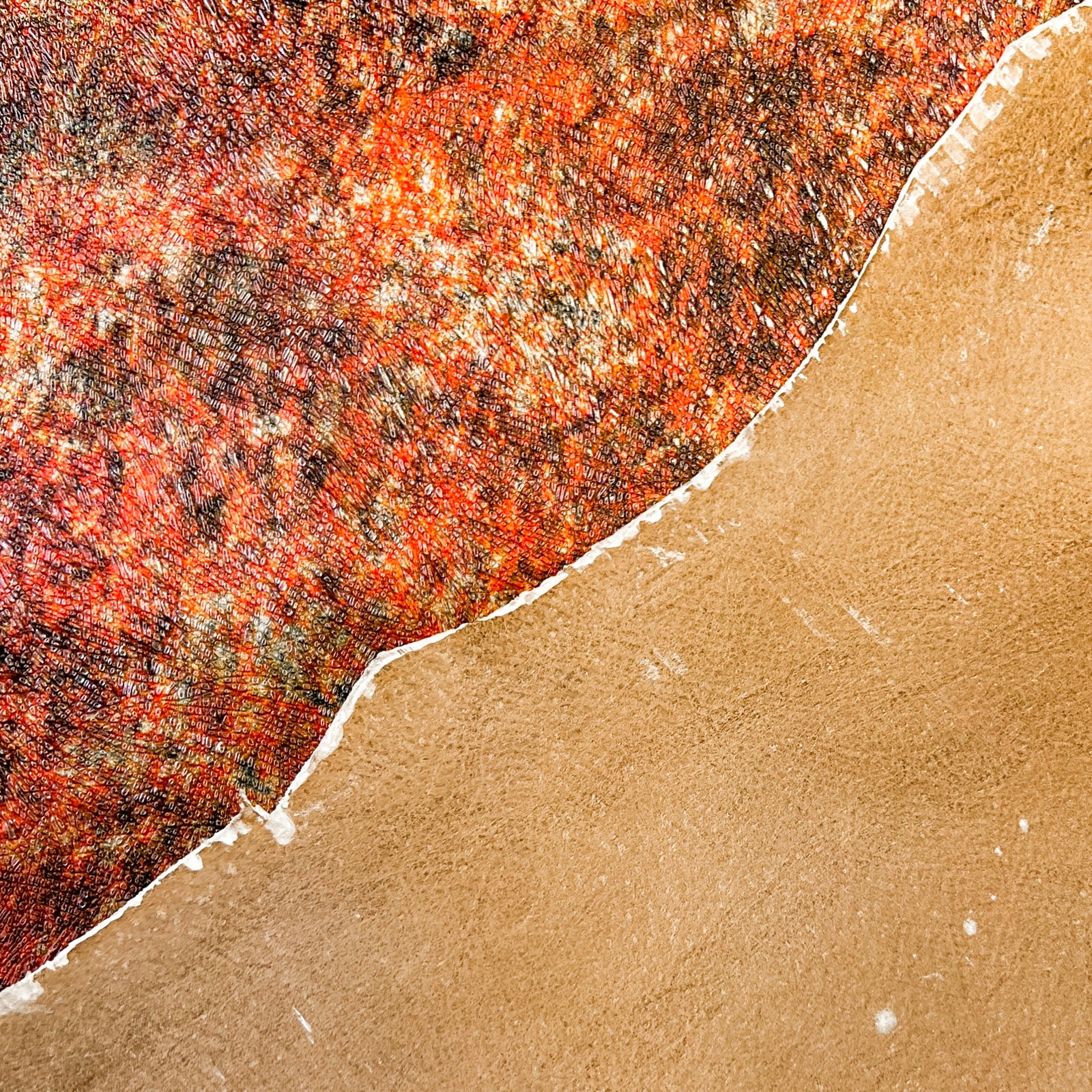 Beautiful orange lambskin pieces with mixed colors and saffiano galaxy print. Thin crafting pieces. Amazing leather for bag and purse crafters will be long-lasting. Our mission is to provide only the highest quality Italian leather to other leather workers, crafters of all kinds, small businesses, or shops for your projects.