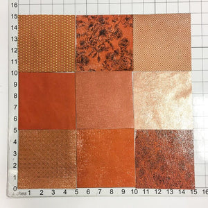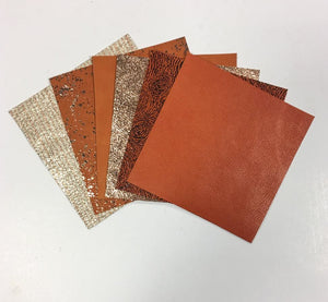 -Selection of 6 leather pieces in different brown shades, size - 5x5 inches -Please note that genuine leather is natural and part of an animal, scars and imperfections are all part of its character and personality. As every animal is different there aren't too identical pieces of leather in the world.