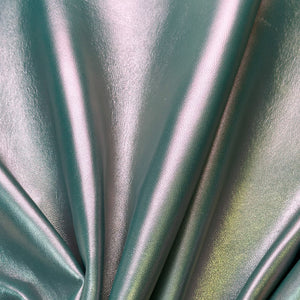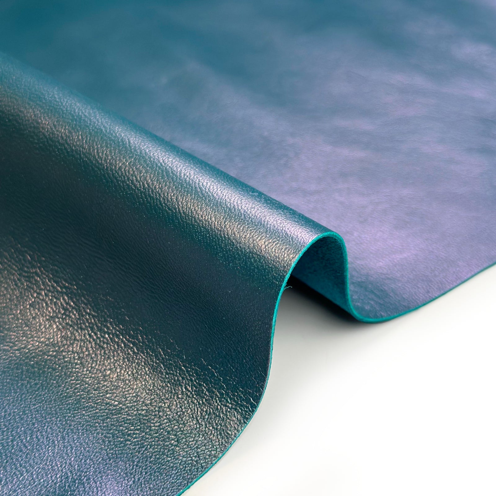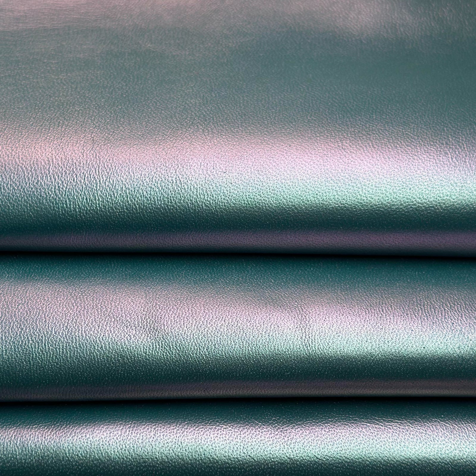 Premium quality lambskin leather hide in green mixed with blue color. Perlamuter finishing. This hide is soft yet durable, perfect for high-end crafts and fashion applications. Direct from Italy - real, full-grain lamb leather. ✨