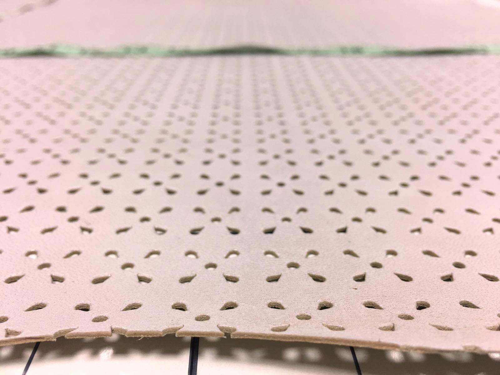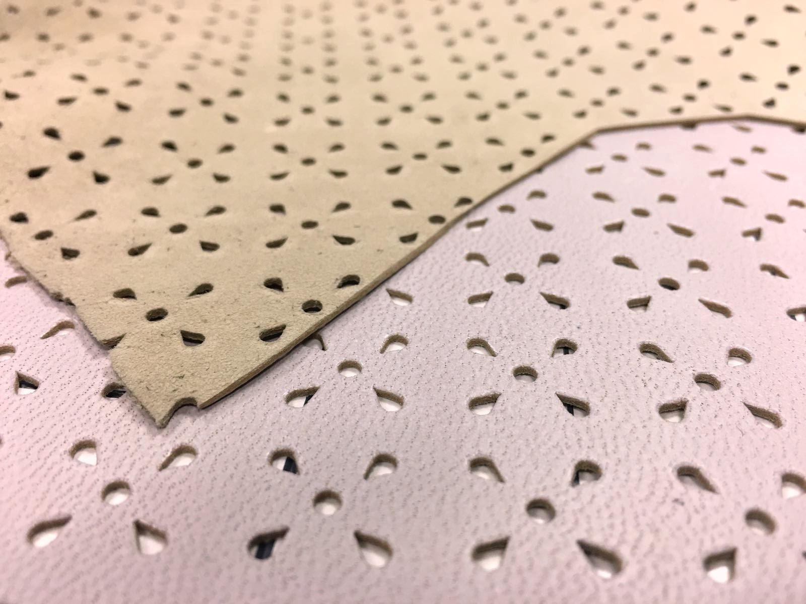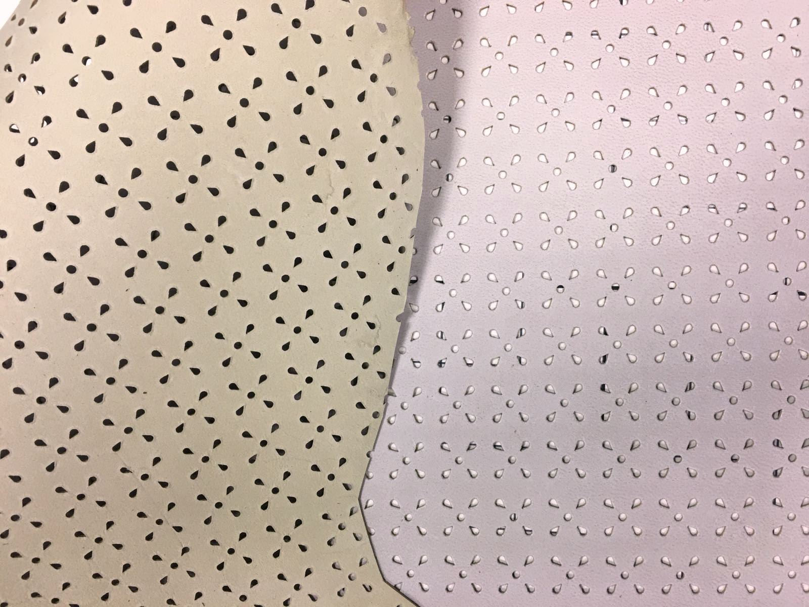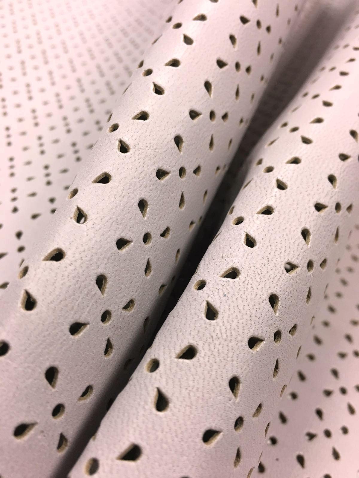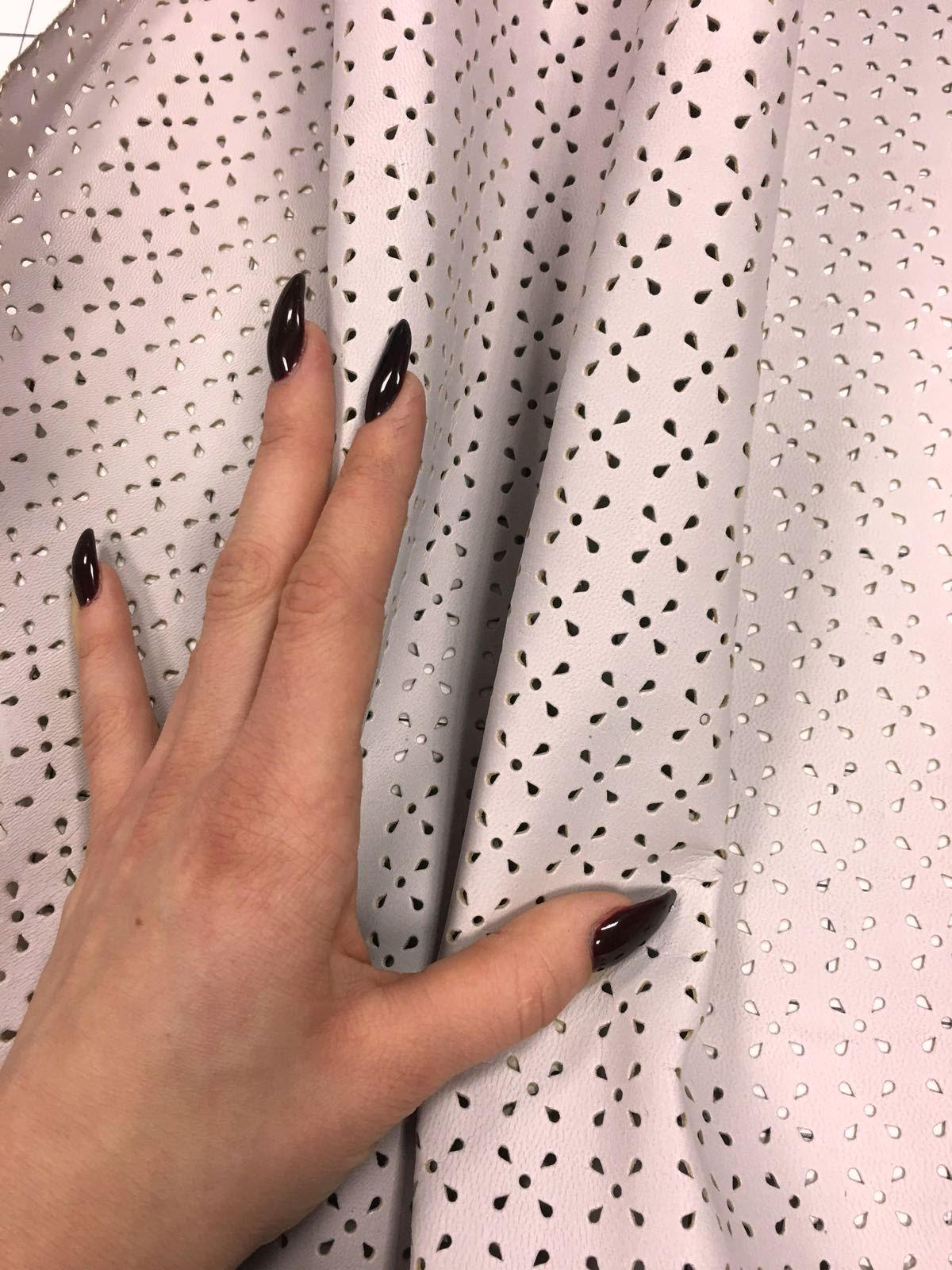 Delicate, soft, and beautifully detailed — this Rose Dust perforated lambskin is perfect for elegant, feminine designs.