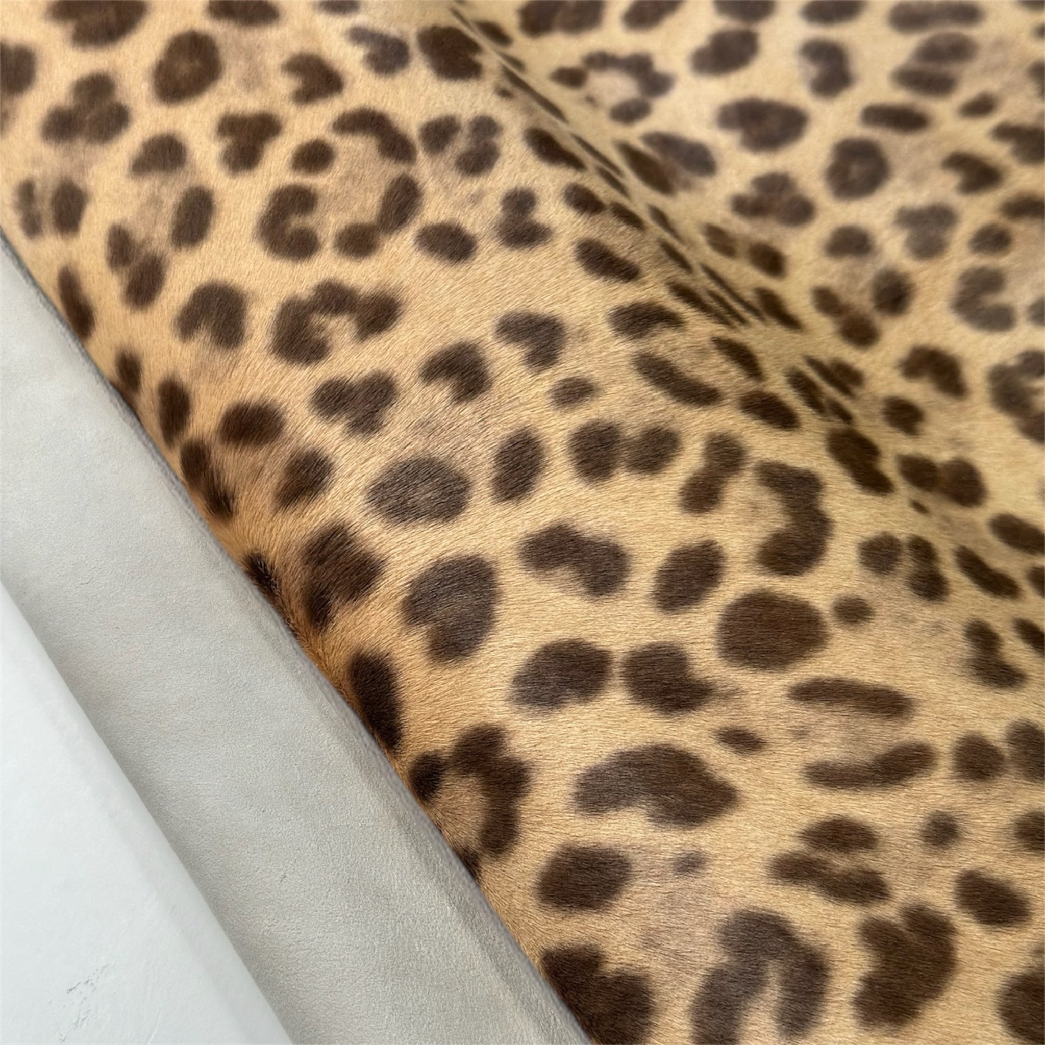 High-quality genuine pony leather fabric hides in brown/beige color with leopard print. Soft fur leather material pieces for your best projects! Our mission is to provide only the best quality Italian...