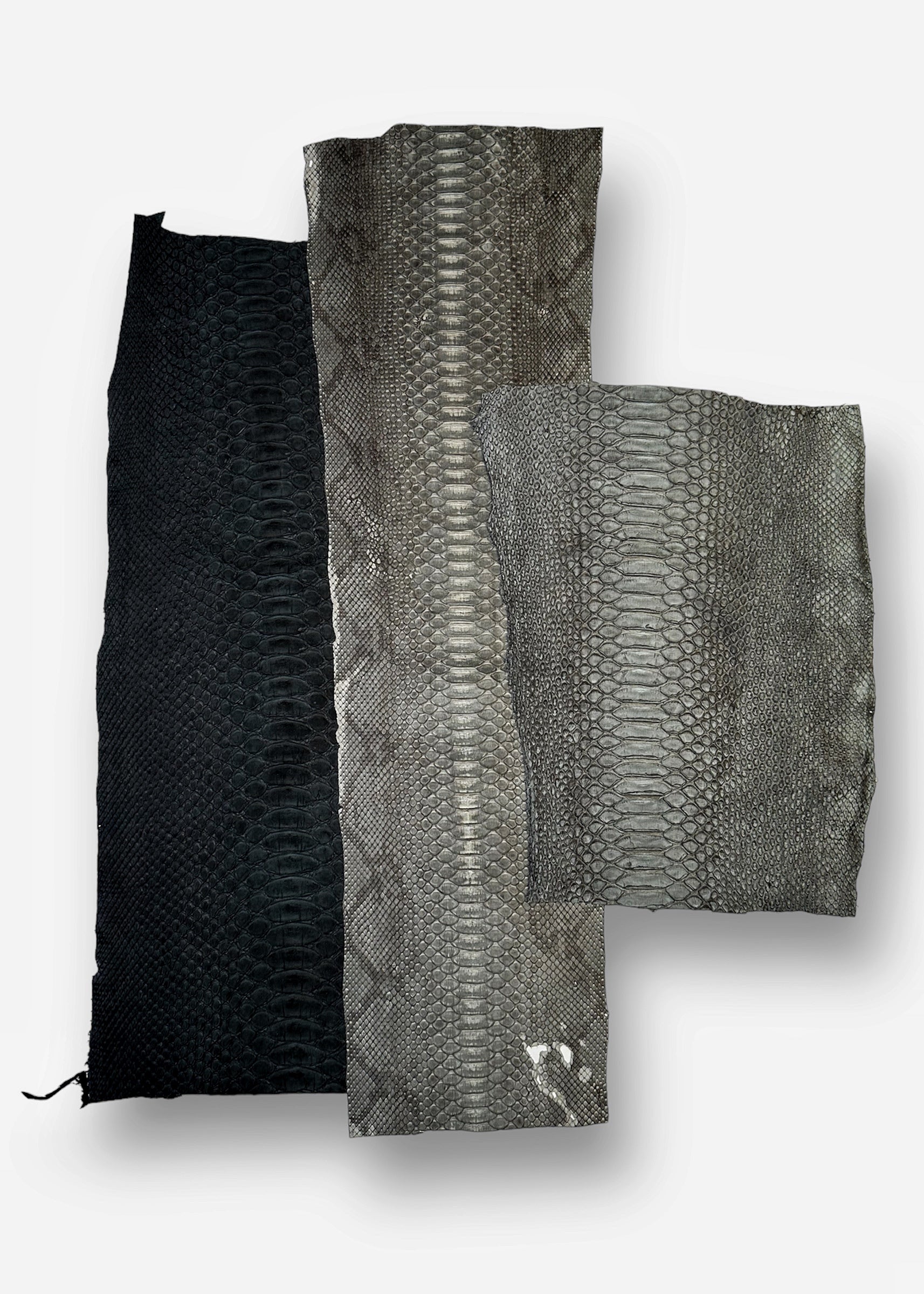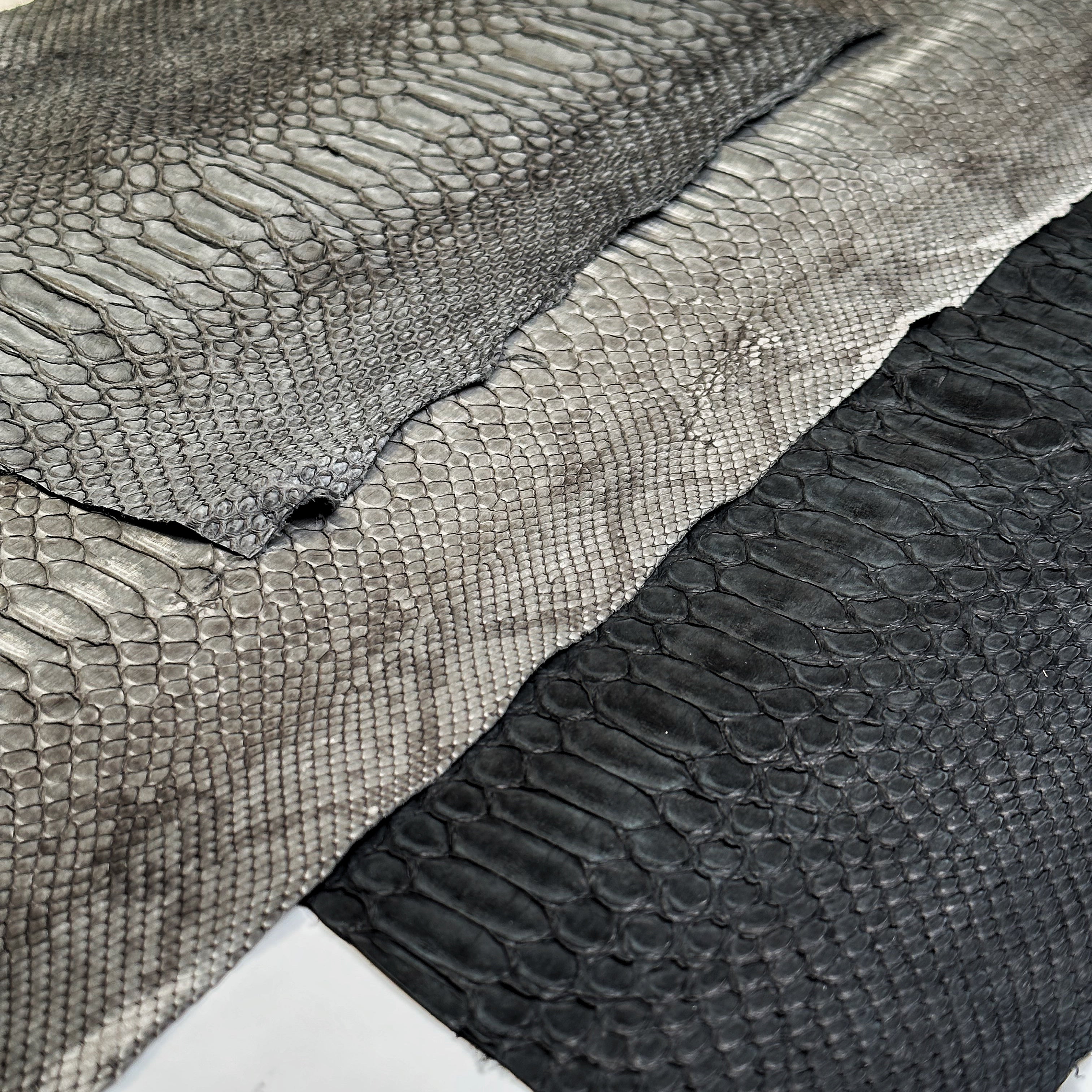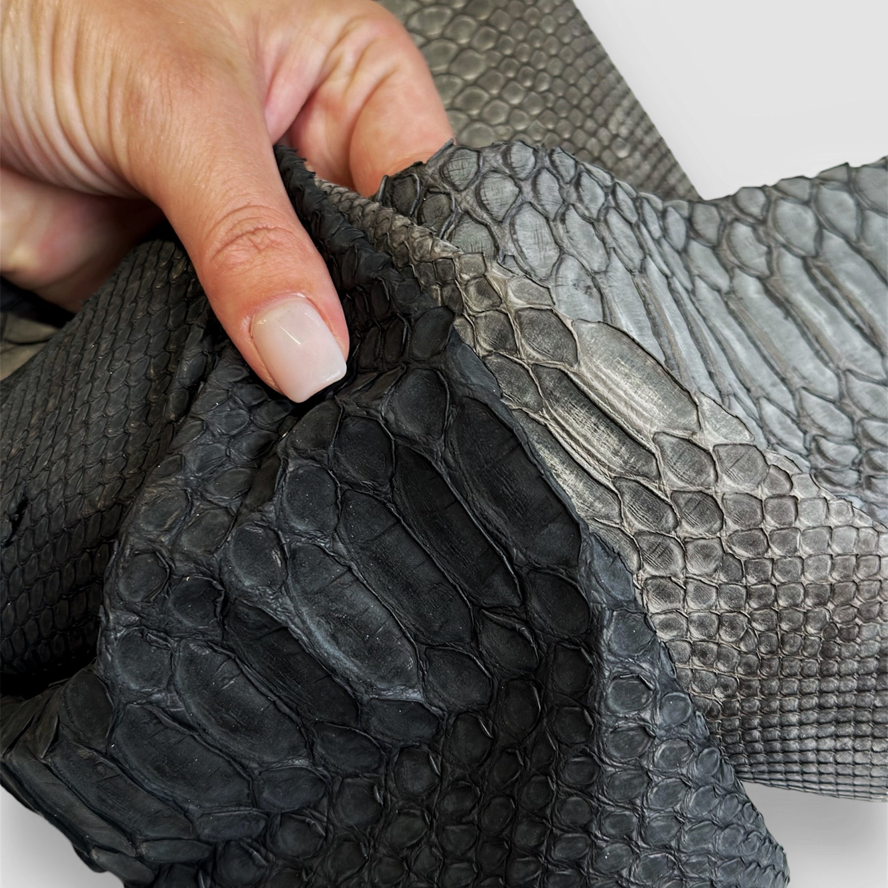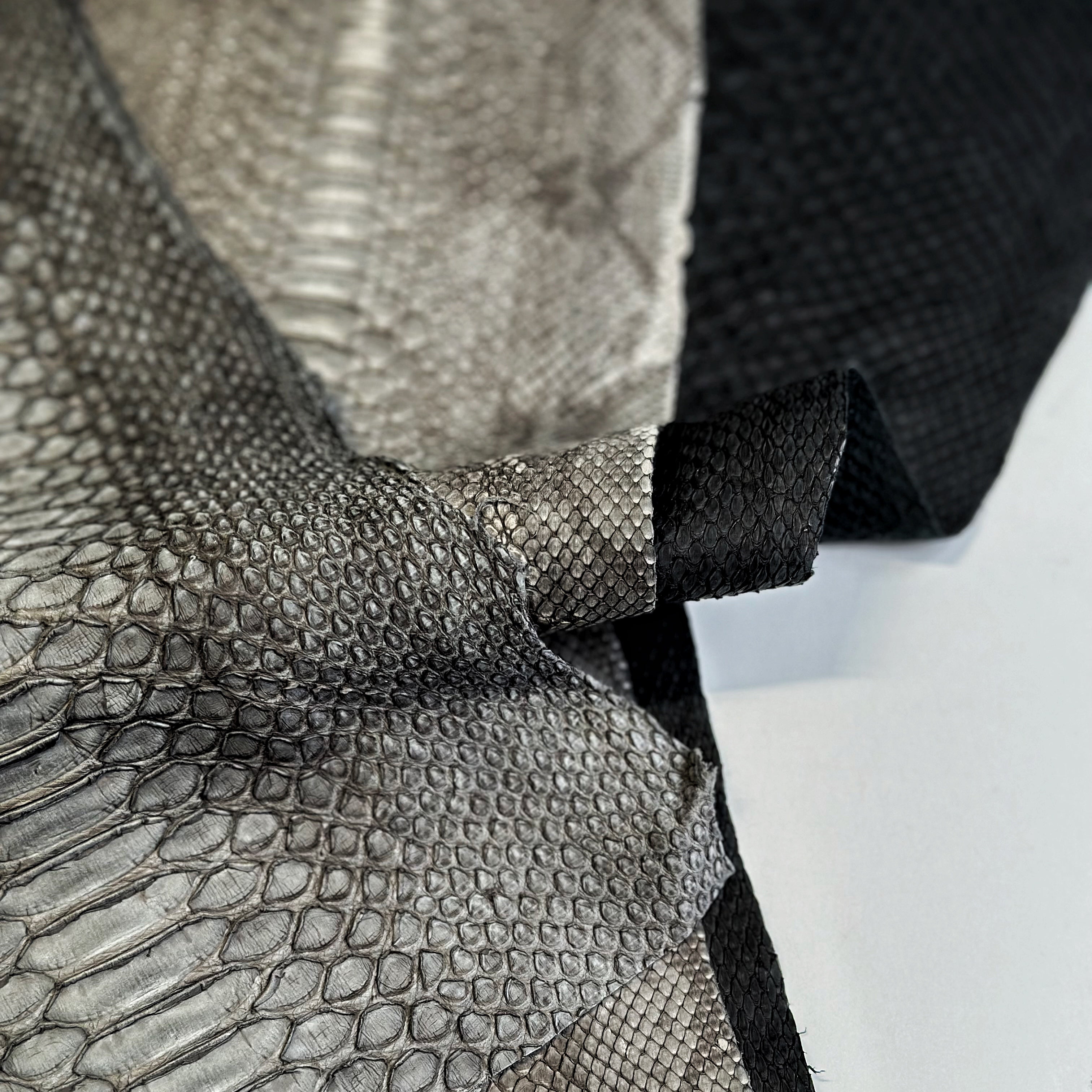 High-quality PYTHON SNAKE leather scraps. Real python leather sheet mix of taupe, black, and gray. Amazing thin texture for your best projects! Our mission is to provide only the best quality Italian leather samples to other leather workers, crafters of all kinds, small businesses, or Etsy shops for your own projects.