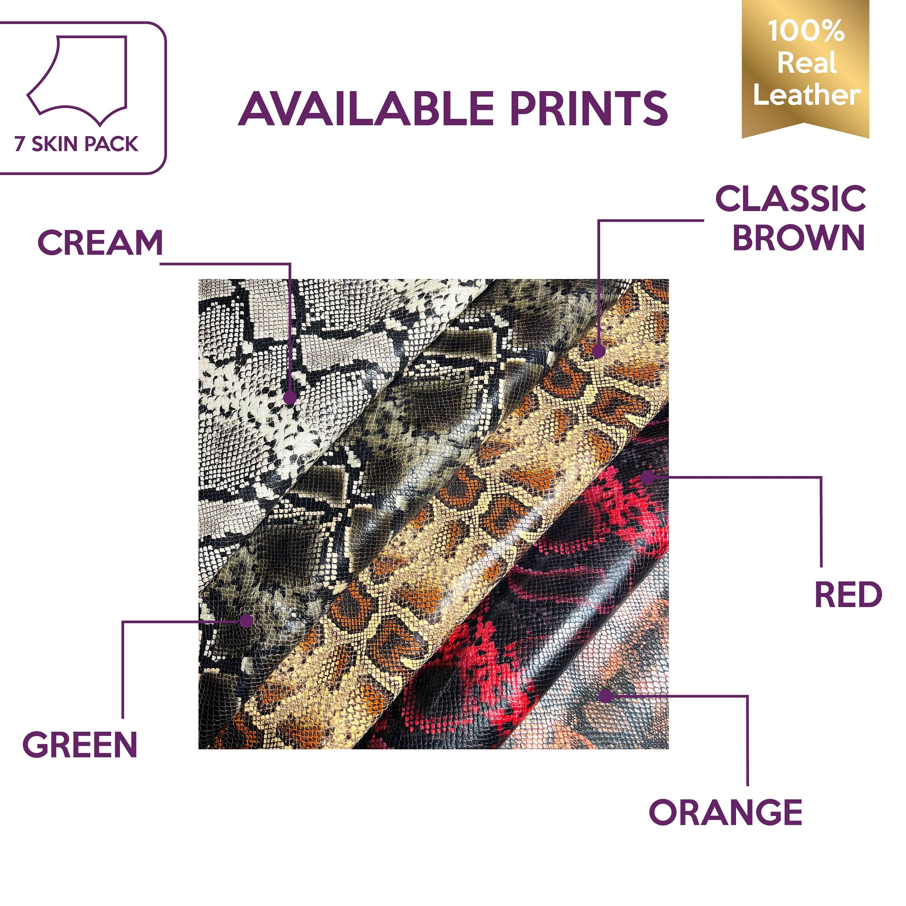 Beautiful, large, high-quality snake print leather hides, perfect for shoes, bags, small accessories, and clothing, it gives a real reptile look for lambskin price.
