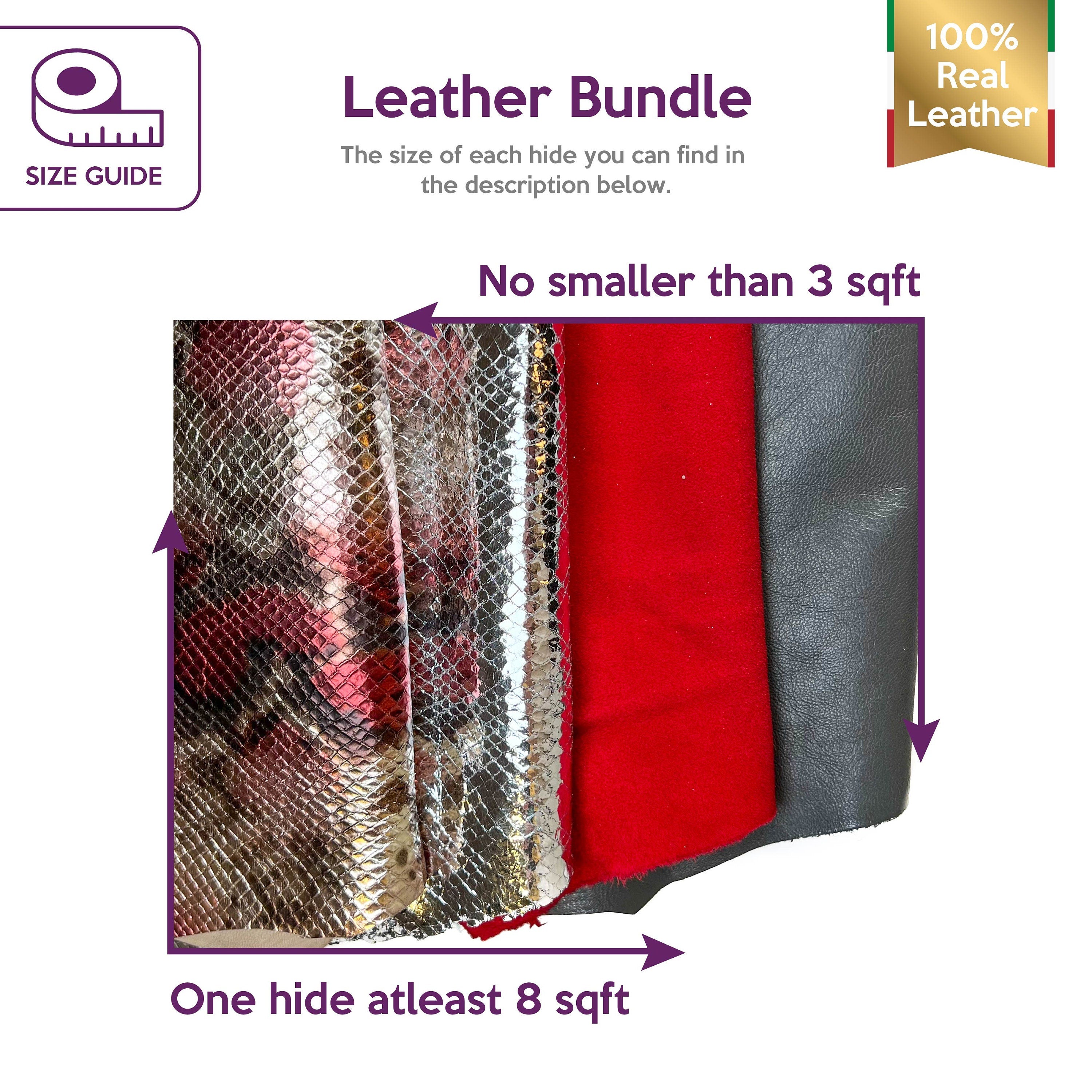 Four different leather pieces as pictures. Each hide's size is different. Unique and gorgeous material for your best projects! Our mission is to provide only the best quality Italian leather samples to other leather workers, crafters of all kinds, small businesses, or Etsy shops for your own projects.
