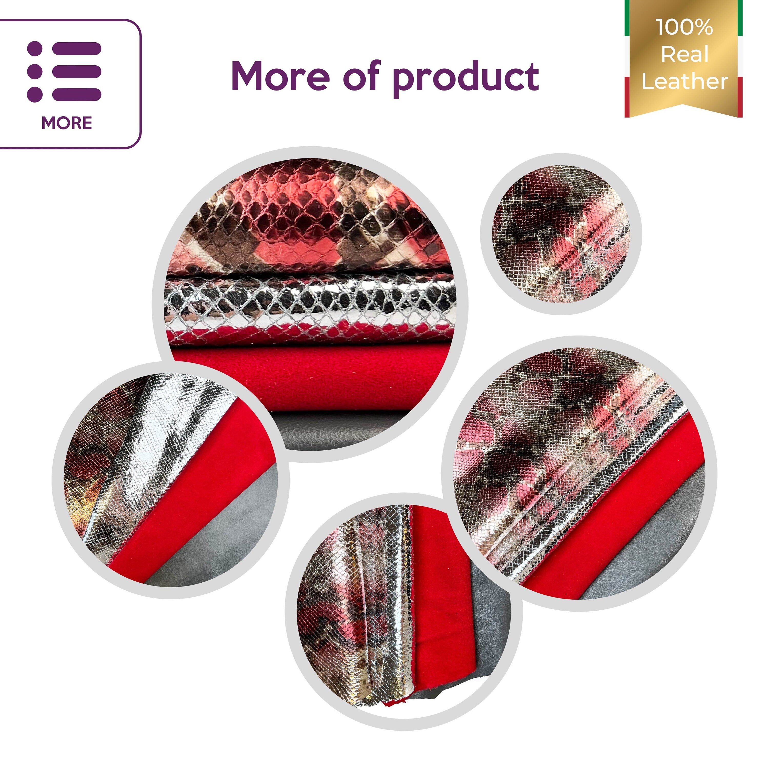 Red Snake Gray Lambskin Red Suede Silver Bundle of 4 Premium Italian Skins / FREE Express Delivery Included /2 - 7.3 sqft /1 oz - 3 oz