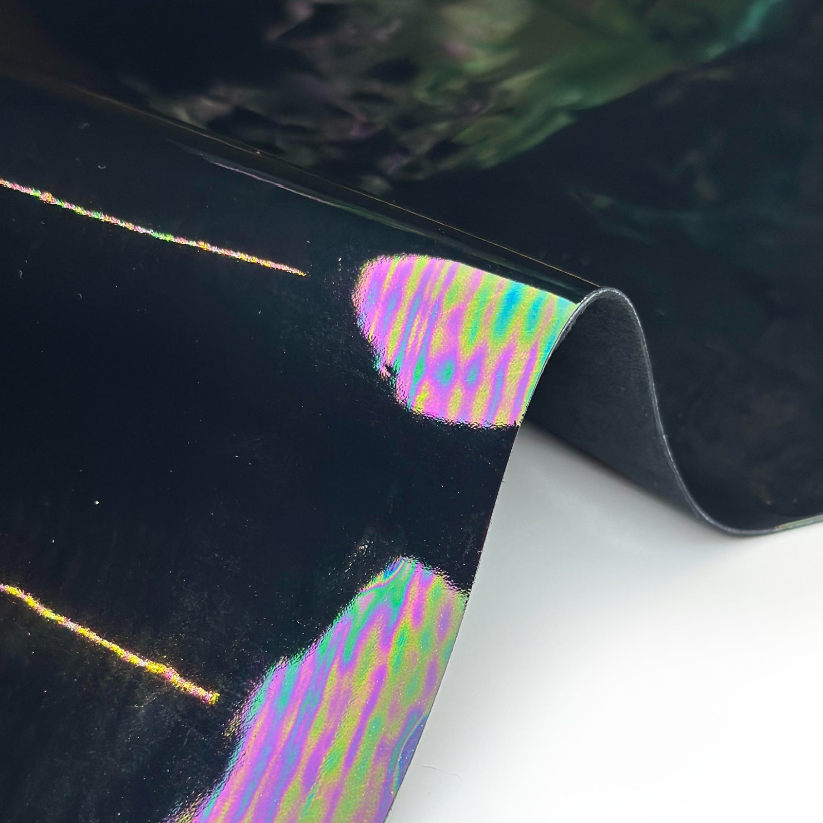✨ Add luxury and uniqueness to your leather projects with this stunning black patent lambskin, featuring a mesmerizing gasoline-like shine. The iridescent finish gives off subtle hues, shifting in light for a striking, high-fashion look..