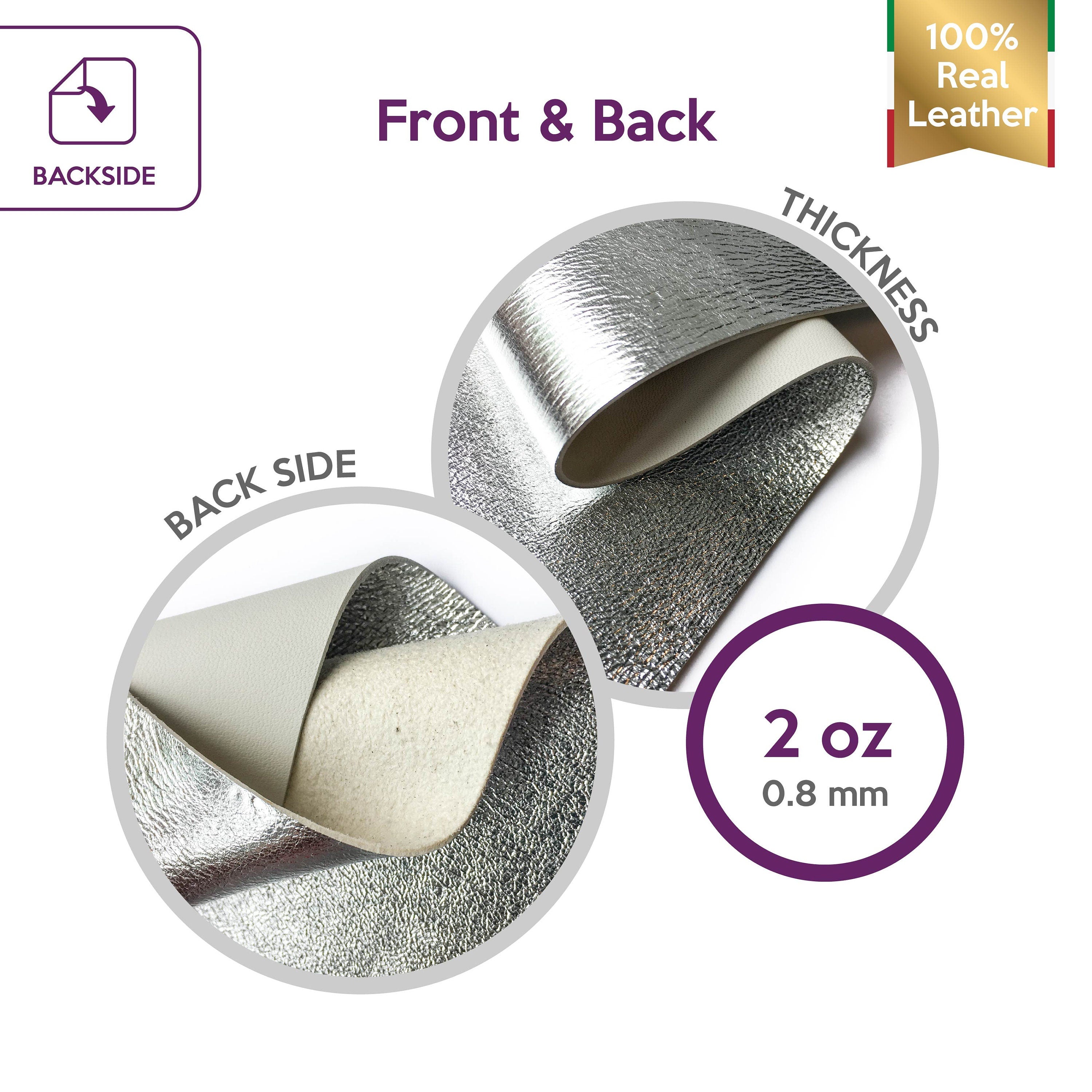 -Shiny silver leather material for sewing and crafts. Silver genuine sheep skin sheets, light metal natural leather pieces for cricut, jewelry making and accessories.