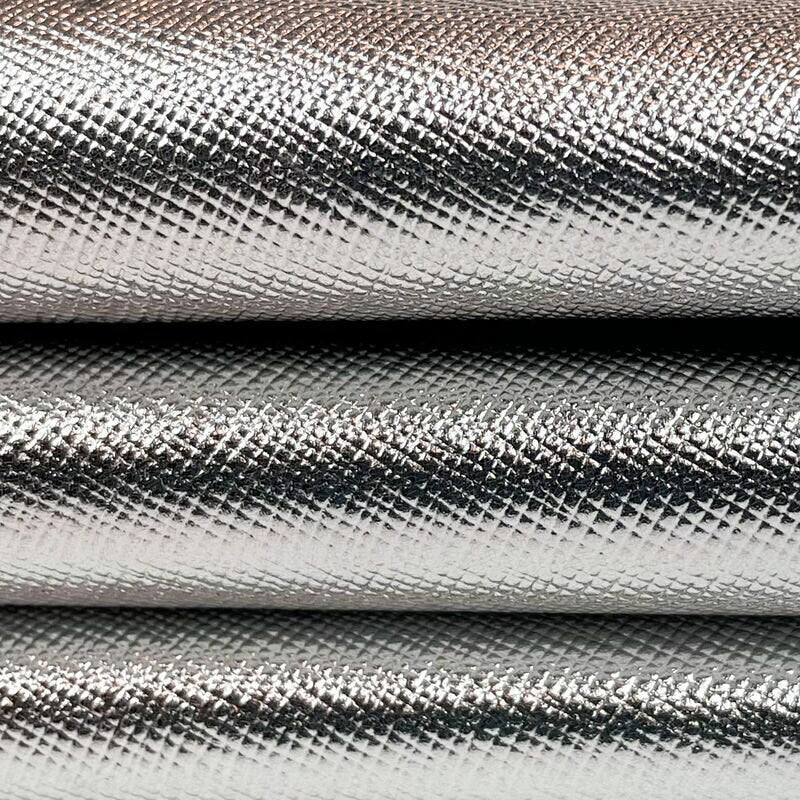 Metallic Silver Lambskin Leather / Cross-Hatch Pattern Technique/ 0.7mm/1.75oz / SILVER SAFFIANO 1083