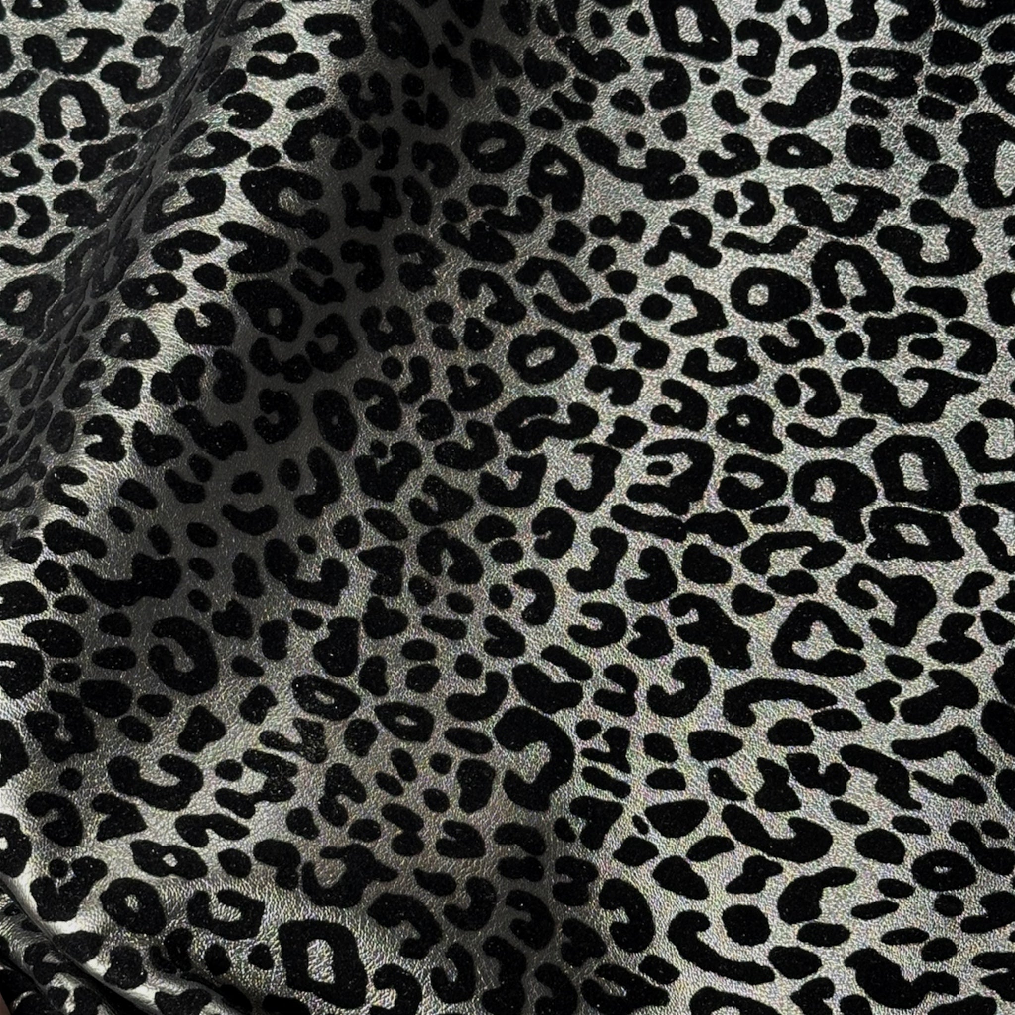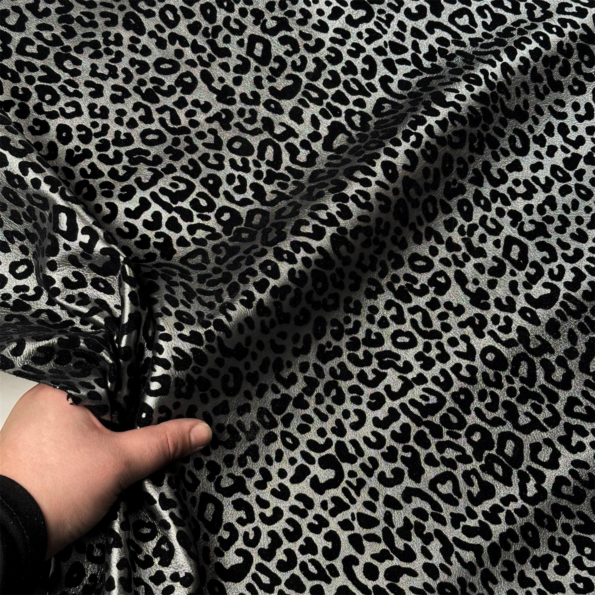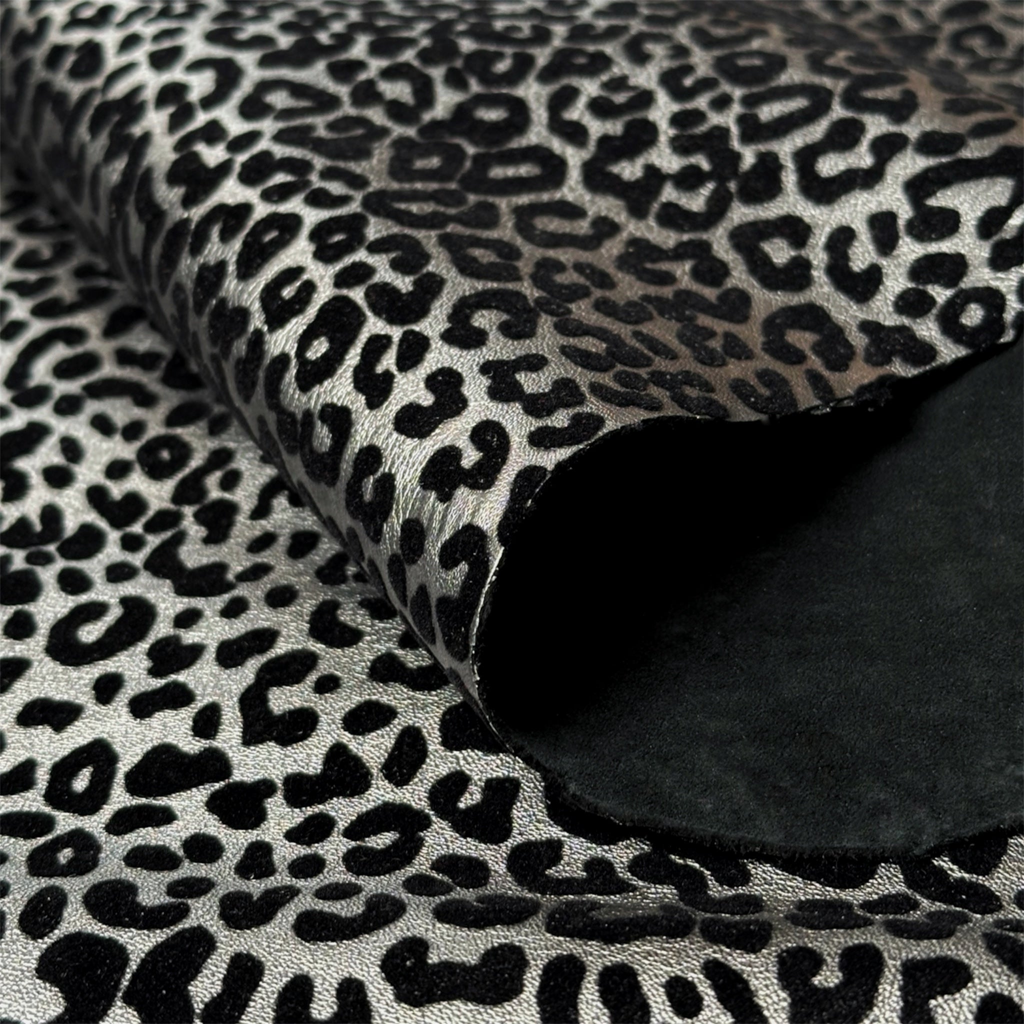 Dark silver metallic lambskin leather with black suede leopard print. Amazing leather for bag and purse crafters will be long-lasting. Our mission is to provide only the highest quality Italian leather...