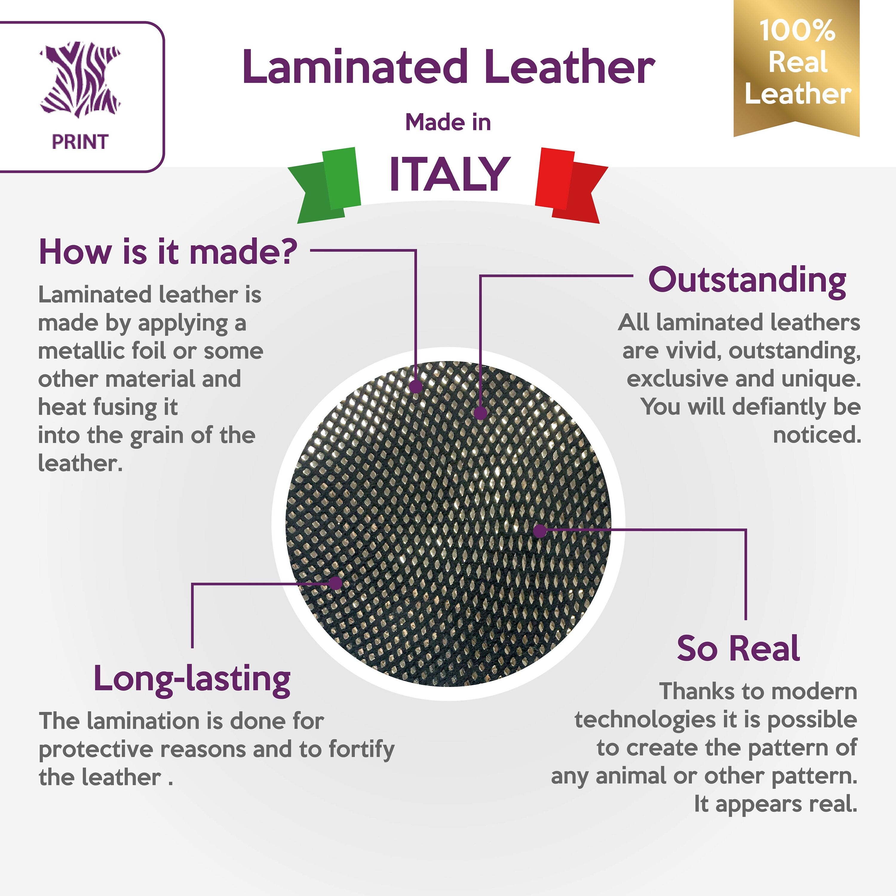 -SILVER leather fabric, Genuine Lambskin Leather for sewing. Lightweight black suede leather with shiny silver Metallic print. Italian quality leather for handcrafting, shoe making and sewing in general. Fantastic textured silver leather sheets. Gorgeous Leather for glamorous accessories.