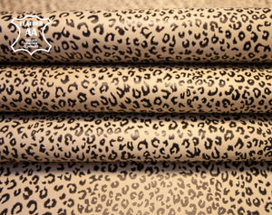 -LEOPARD Leather print. Small leopard print. Genuine Leather material for sewing. Fantastic Leopard skin print on lambskin leather. Cute Leopard print. Brown Lambskin leather pieces. Italian quality leather fabric.