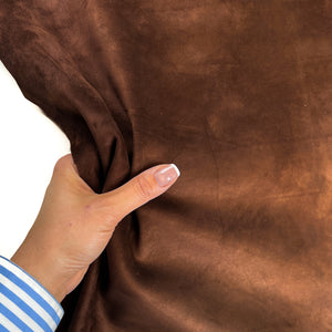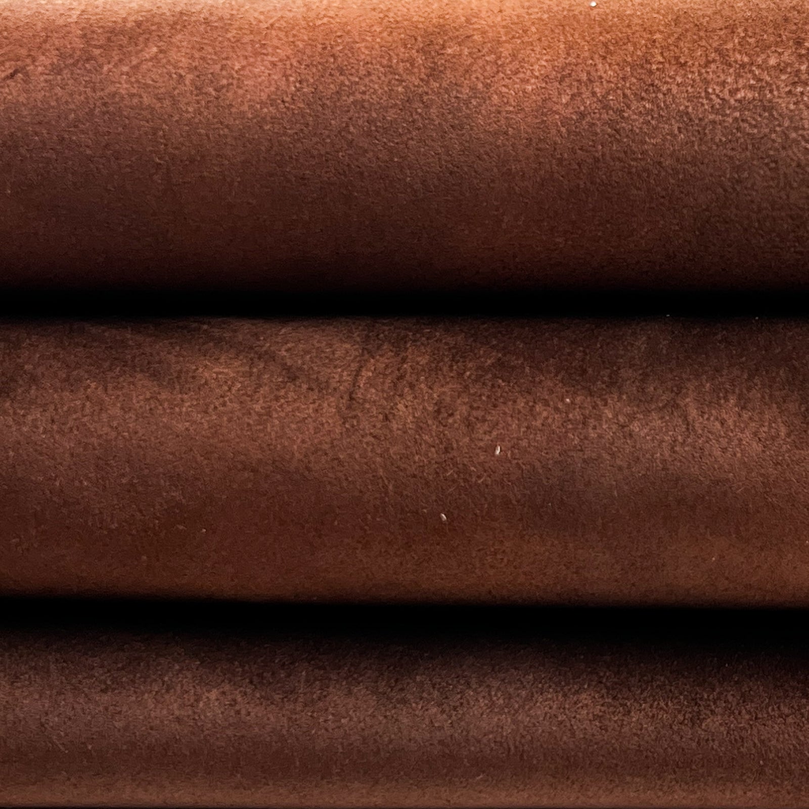 Soft dark brown suede leather skins. Genuine lambskin velour material. Amazing leather for bag and purse crafters will be long-lasting. Our mission is to provide only the highest quality Italian leather to other leather workers, crafters of all kinds, small businesses, or shops for your own projects.