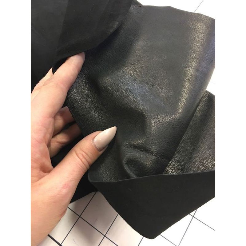 -Fantastic suede sheets. Lambskin leather pieces for sewing and handcrafting. Mesmerizing Italian quality, perfect coloring. Smooth, pleasant for touch, deep black velour fabric. Try it!