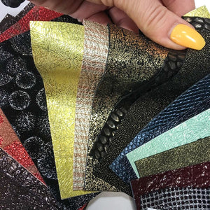 -Selection of 6 or 12 leather pieces in different colors and shades, size - 6x6 inches -Please note that genuine leather is natural and part of an animal, scars and imperfections are all part of its character and personality. As every animal is different there aren't too identical pieces of leather in the world.