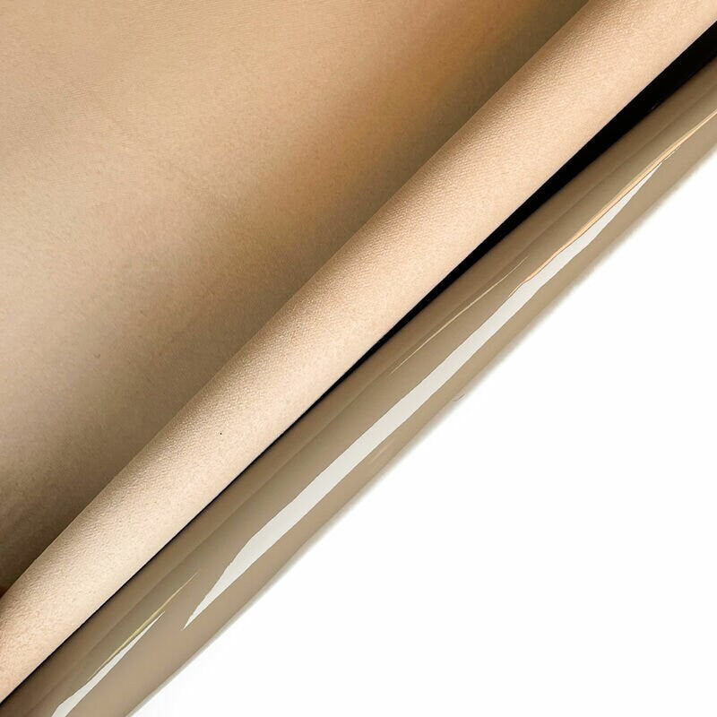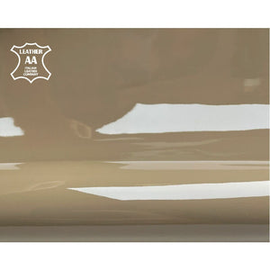 - Taupe leather. Shiny lacquer leather pieces. Glossy lambskin fabric material. The backside is beige. Perfect leather for sewing skirts, pants, jackets.
