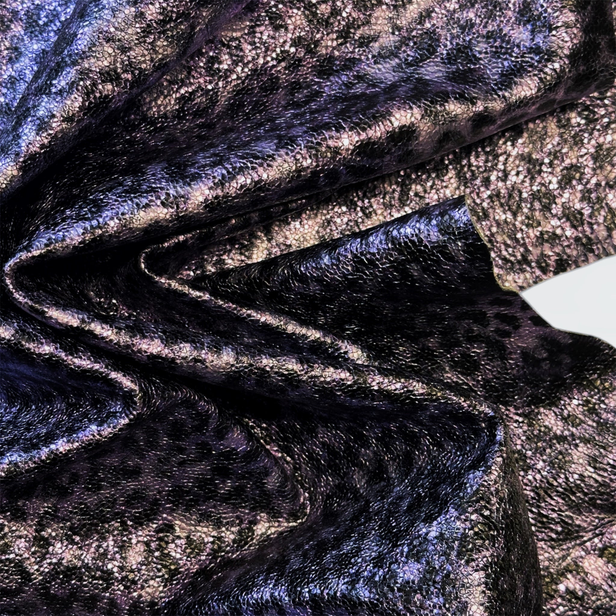 Crunchy violet lambskin pieces with leopard print. Shiny Thick pieces for sewing.