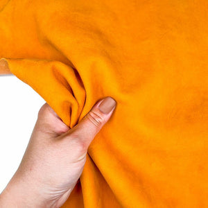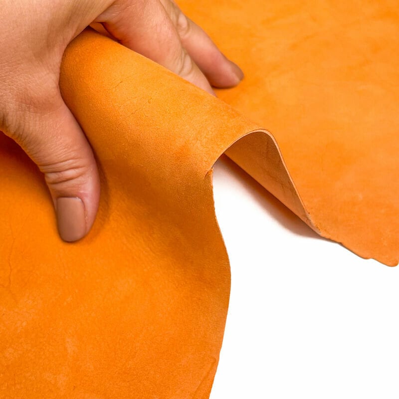 High-quality lambskin suede leather hides in warm bright orange color. Soft leather for your best projects! Our mission is to provide only the best quality Italian leather to other leather workers, crafters of all kinds, small businesses, or Etsy shop for your own projects.