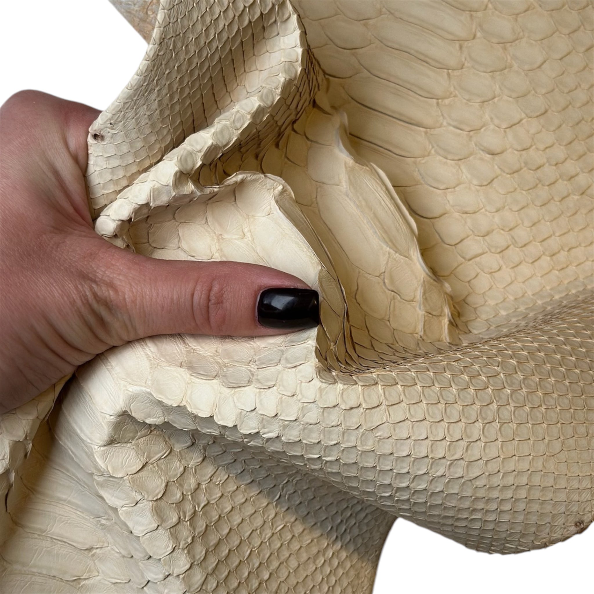 High-quality warm white real python leather sheets. Amazing snakeskin for your best projects! Our mission is to provide only the best quality Italian leather samples to other leather workers, crafters of all kinds, small businesses, or Etsy shops for your own projects.