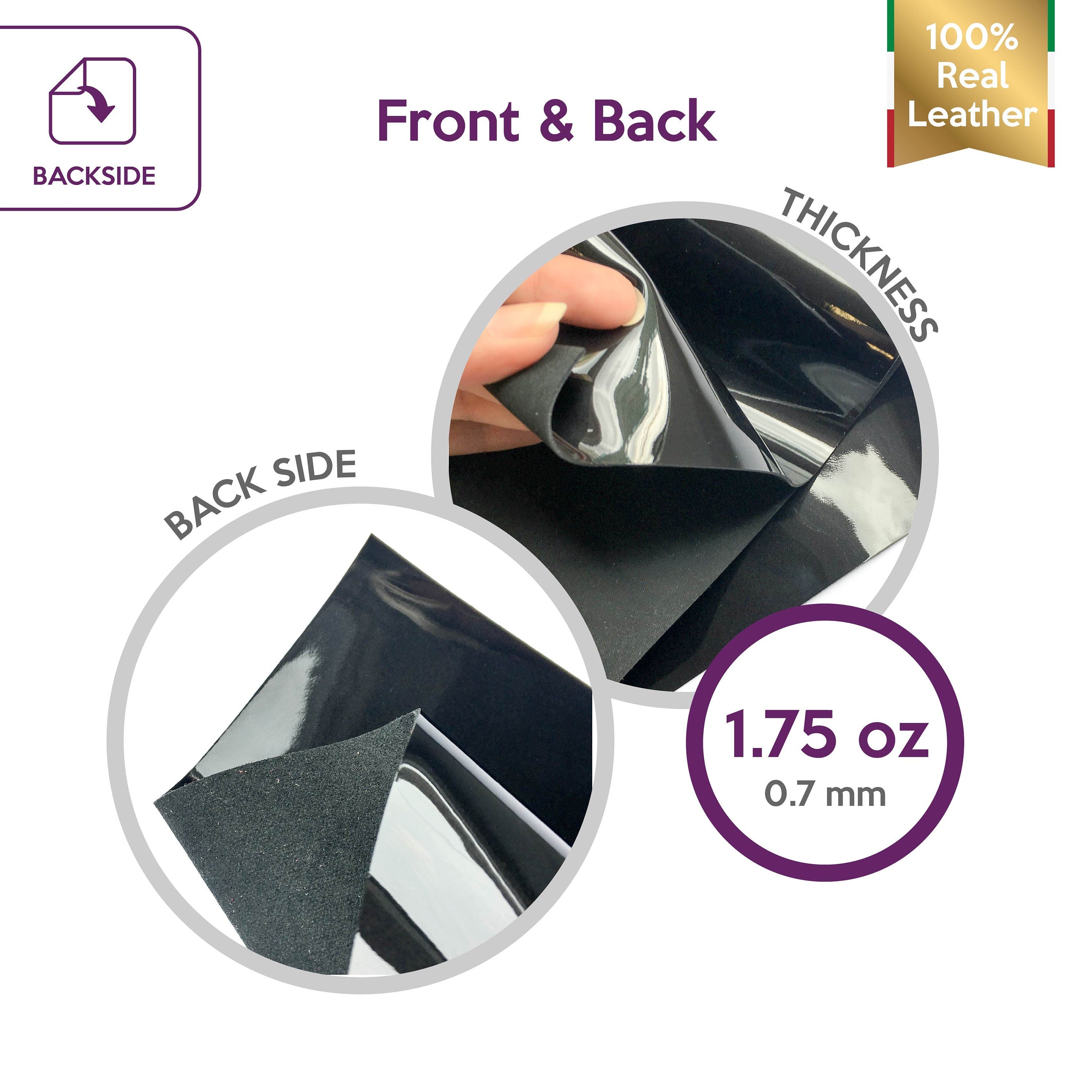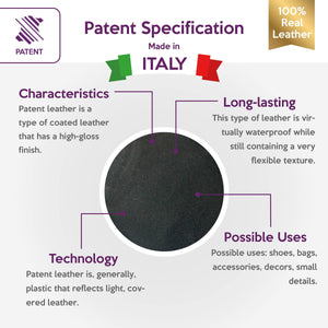 High-quality lambskin PATENT leather. Classic black color leather for your best projects! Our mission is to provide only the best quality Italian leather to other leather workers, crafters of all kinds, small businesses or Etsy shop for your own projects.