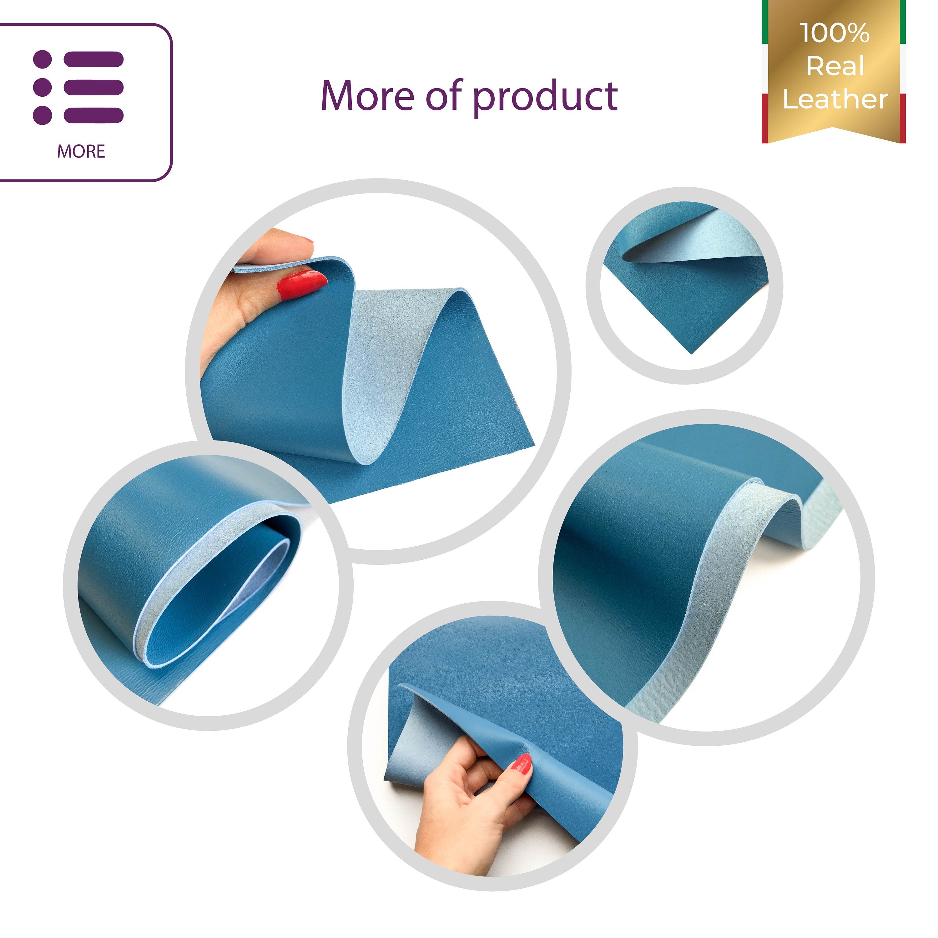-Blue Genuine leather fabric pieces. bright blue natural animal skin. Natural blue leather sheets for earring making. Lightweight craft leather for romantic and classic look. High Italian quality leather material. Beautiful blue coloring through out. Best of the best.